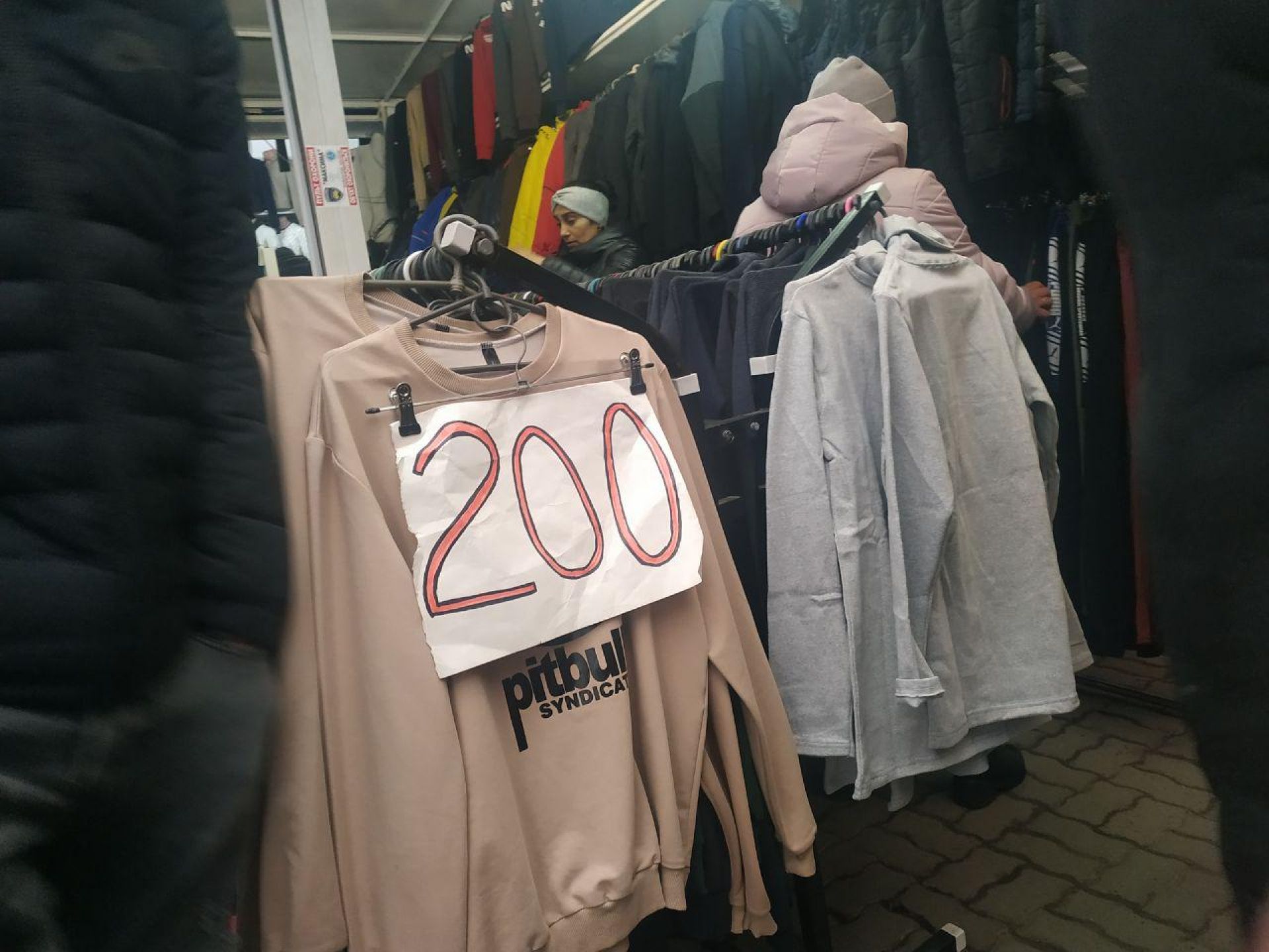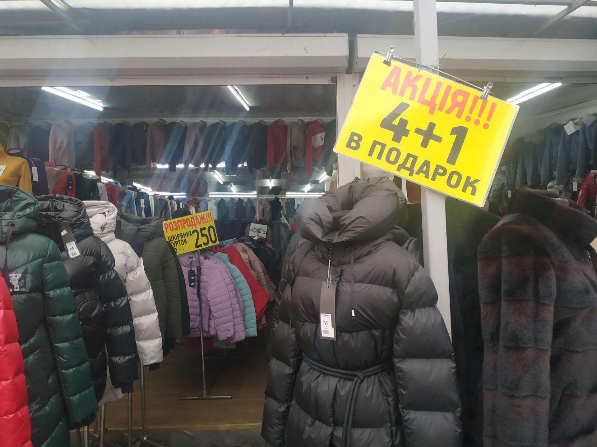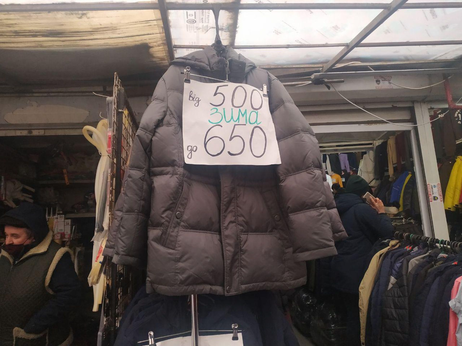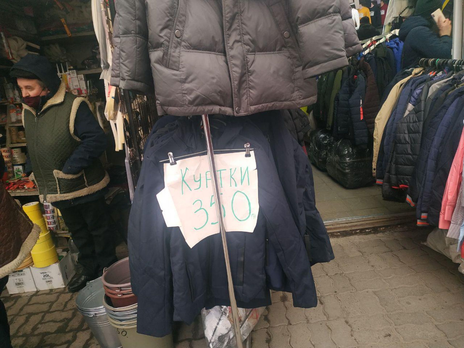 На ринку продавці пишуть великим шрифтом мінімальну ціну на наявний у них товар: кофти - 200 гривень, куртки зимові - від 500 гривень, осінні - 350 гривень. Вартість можна зменшити, якщо вмієте торгуватися.