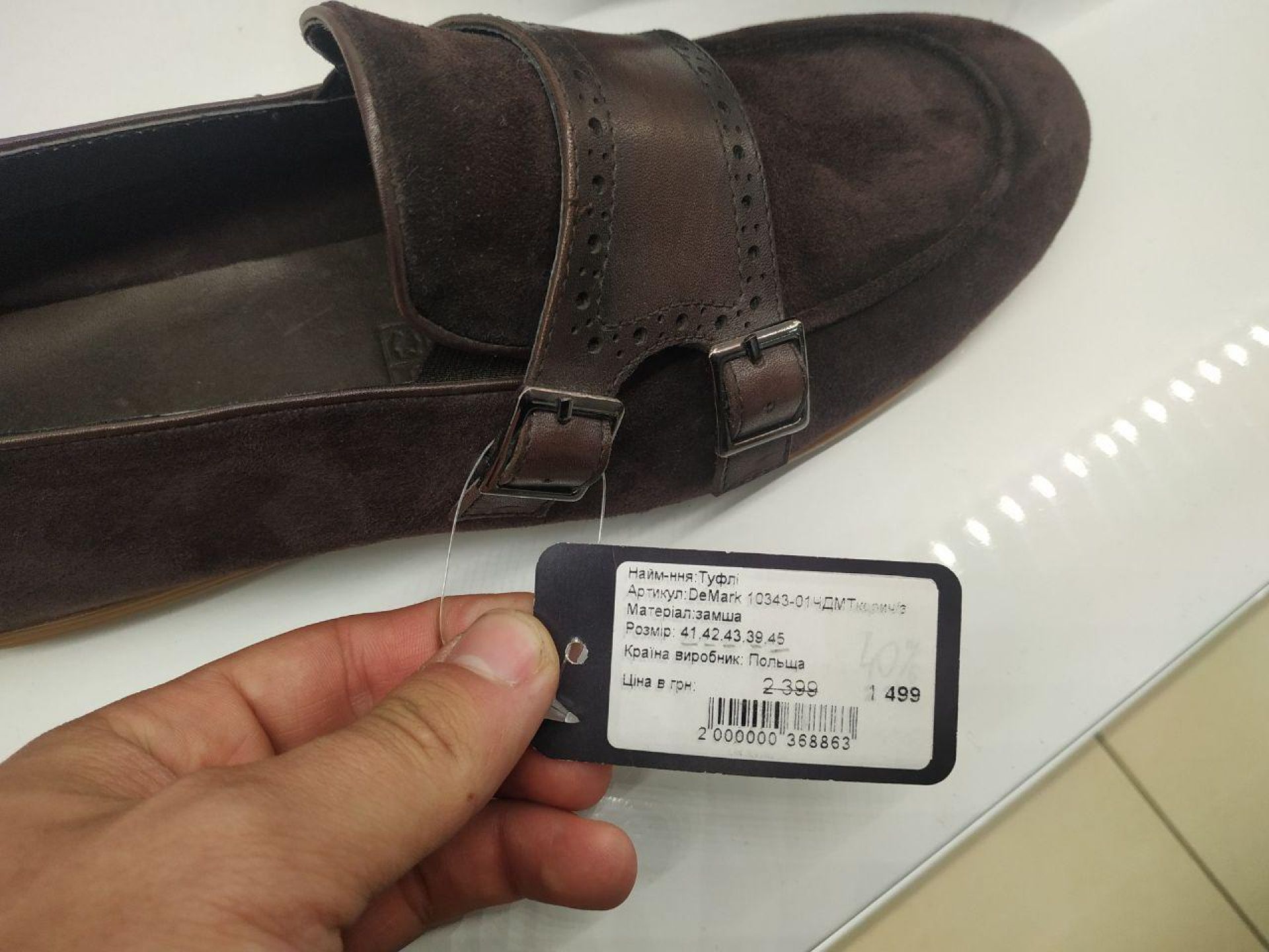 Магазини взуття також пропонують придбати свій товар дешевше. Однак ми не помітили магазинів, що пропонують знижку понад 40 відсотків на свій товар. Так. в одному з магазинів взуття черевики, які вартували 3 300 гривень, тепер коштують 2 310, економія 990 гривень, або ж 30 відсотків. А туфлі можна придбати за 1 499 гривень, при старій ціні в 2 399.
