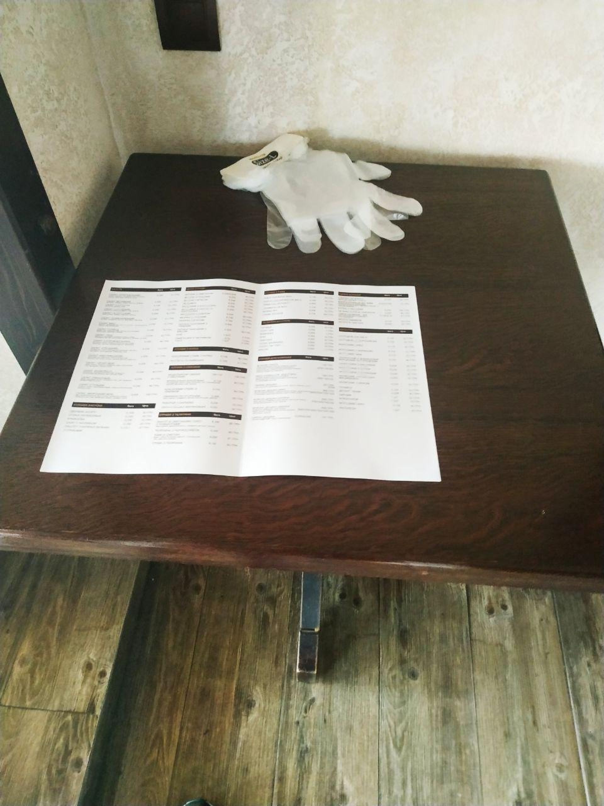 У закладі поки не дають меню на руки, а просять сфотографувати його на вході. Там же є і дезінфікуючий засіб та одноразові рукавички - для відвідувачів.