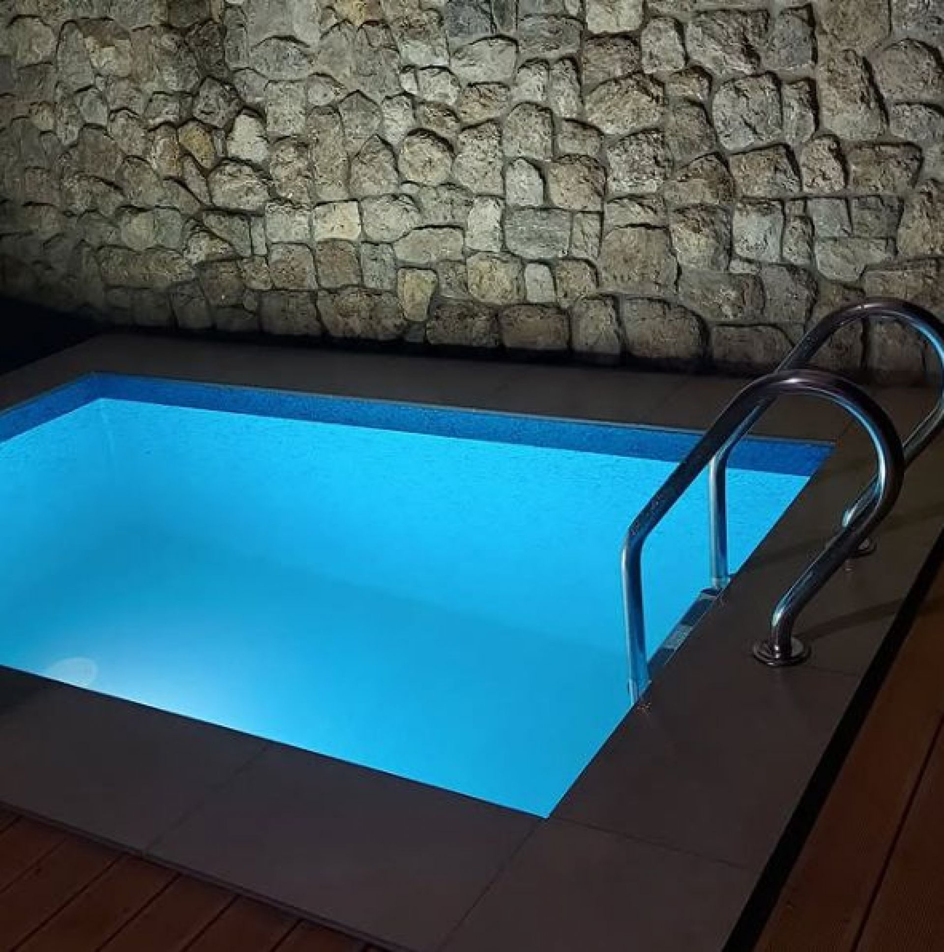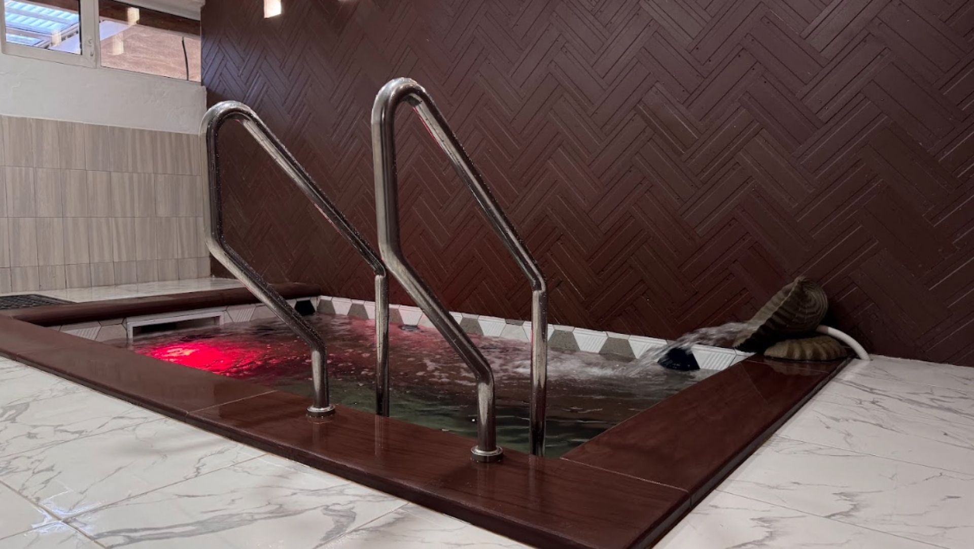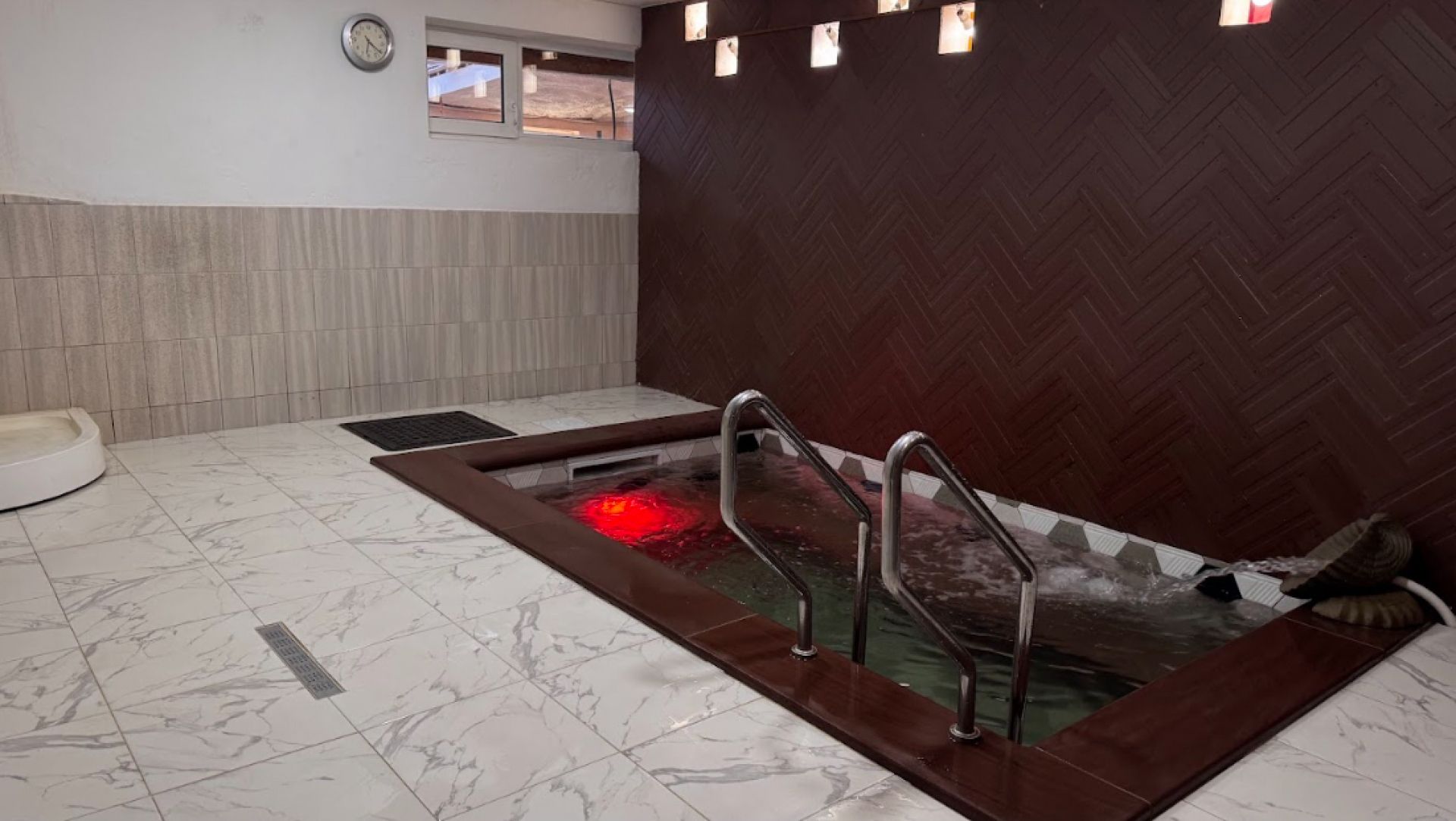 - термальний басейн з контрастною гарячою та холодною водою, дно басейну викладене камінчиками для масажу стоп;