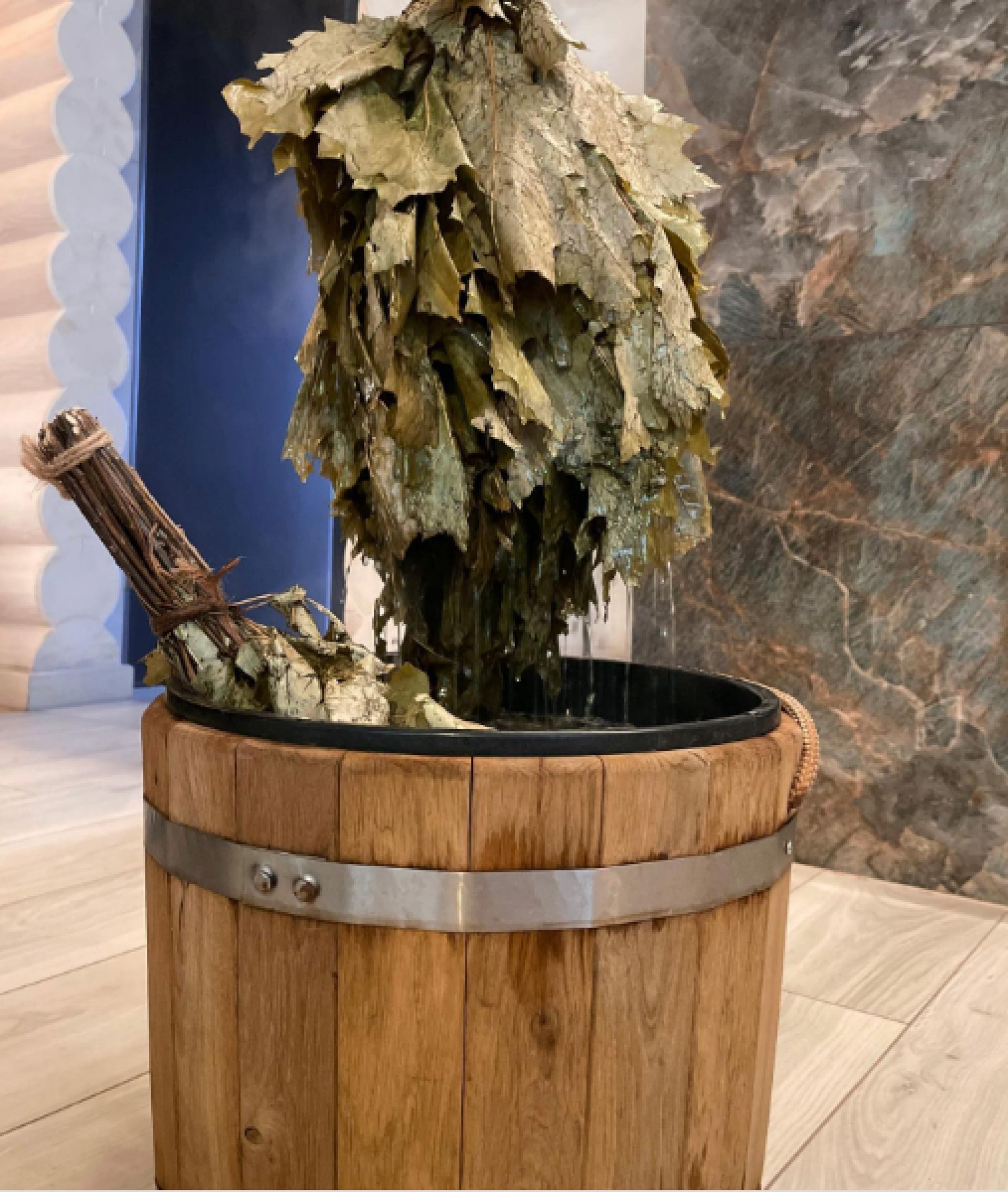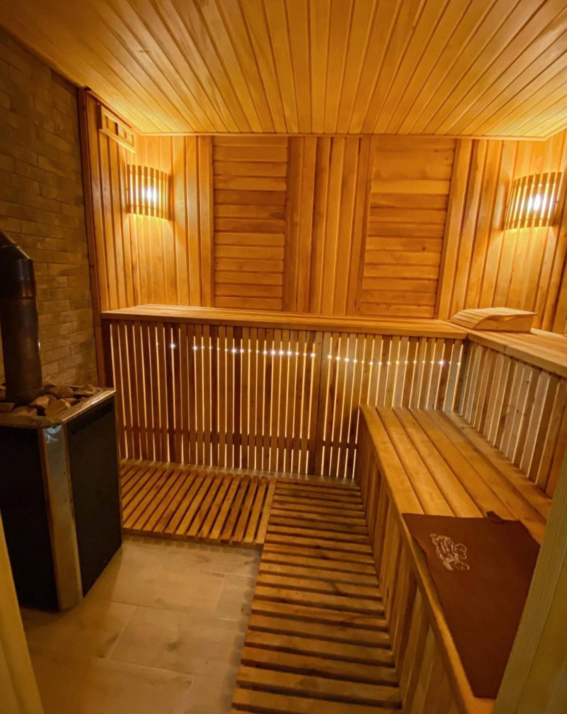 - Сучасна баня з ароматом деревини, дубовими віниками та паром — мокрим або сухим на вибір;