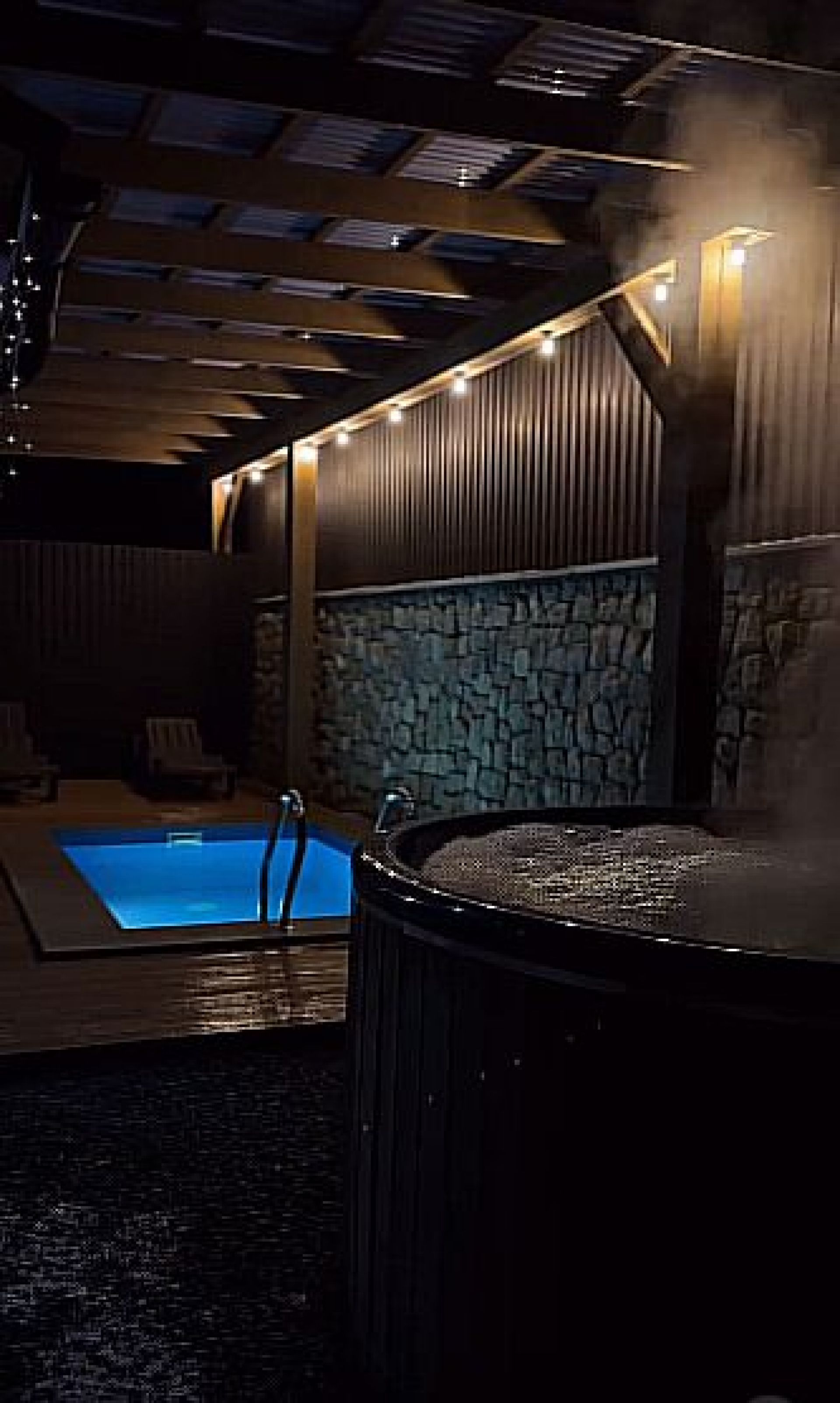 - Чан-джакузі під відкритим небом — релакс у будь-яку погоду;