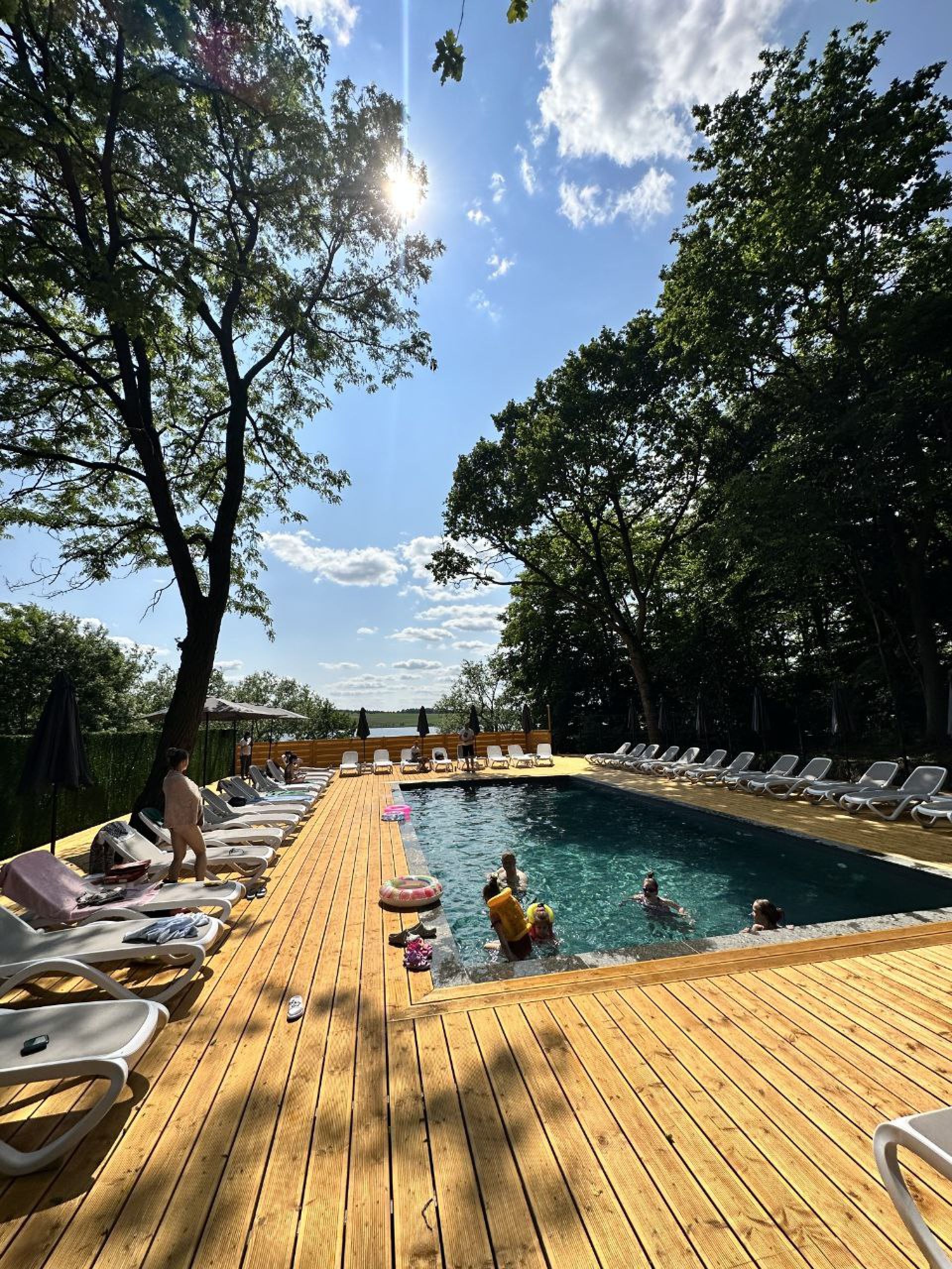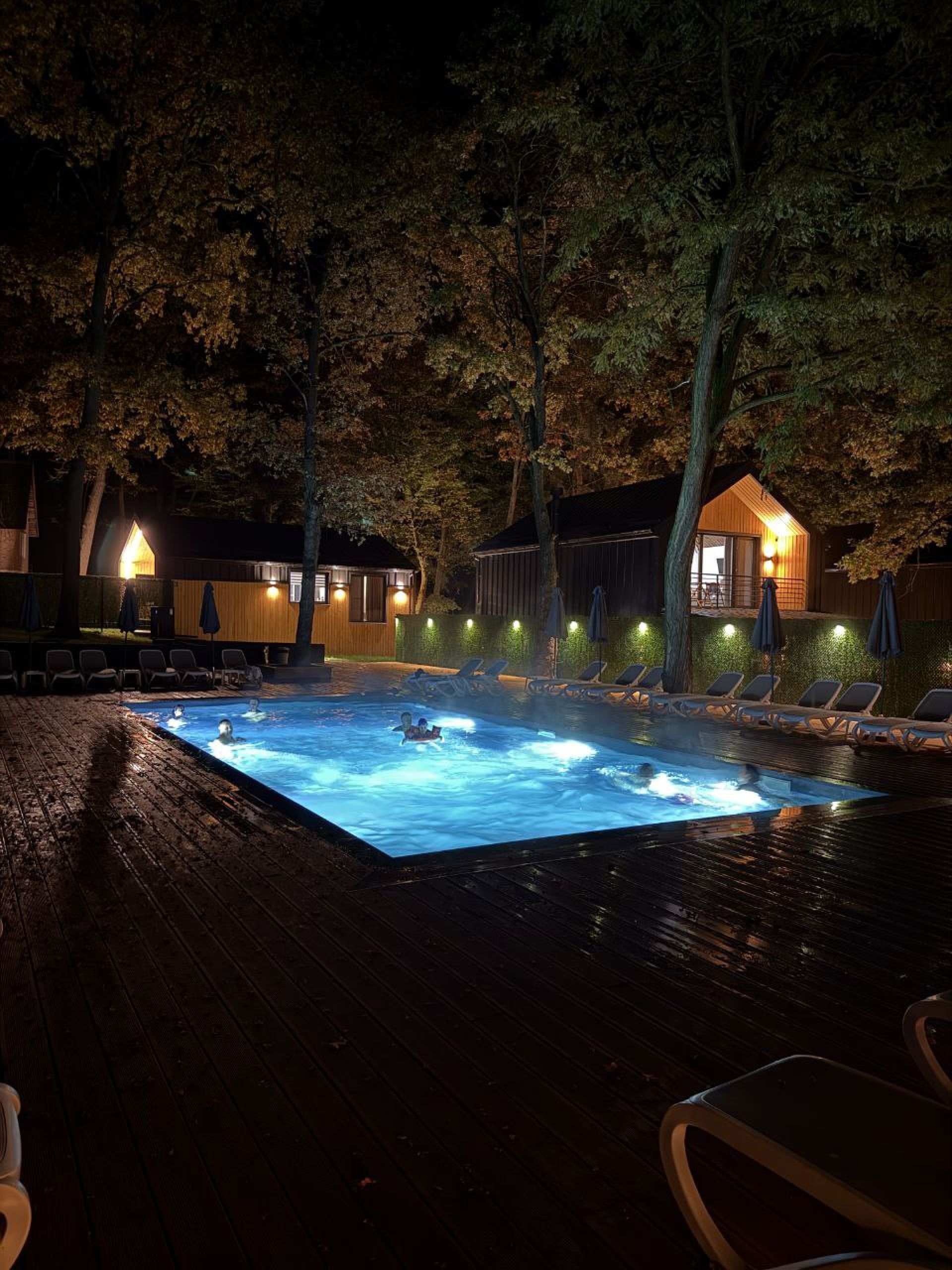 Прекрасне, тихе і спокійна місце з басейном, озером та лісом, подалі від міської метушні. Навколо природа , яка буває такою різною. І завжди зачаровує своїми барвами.