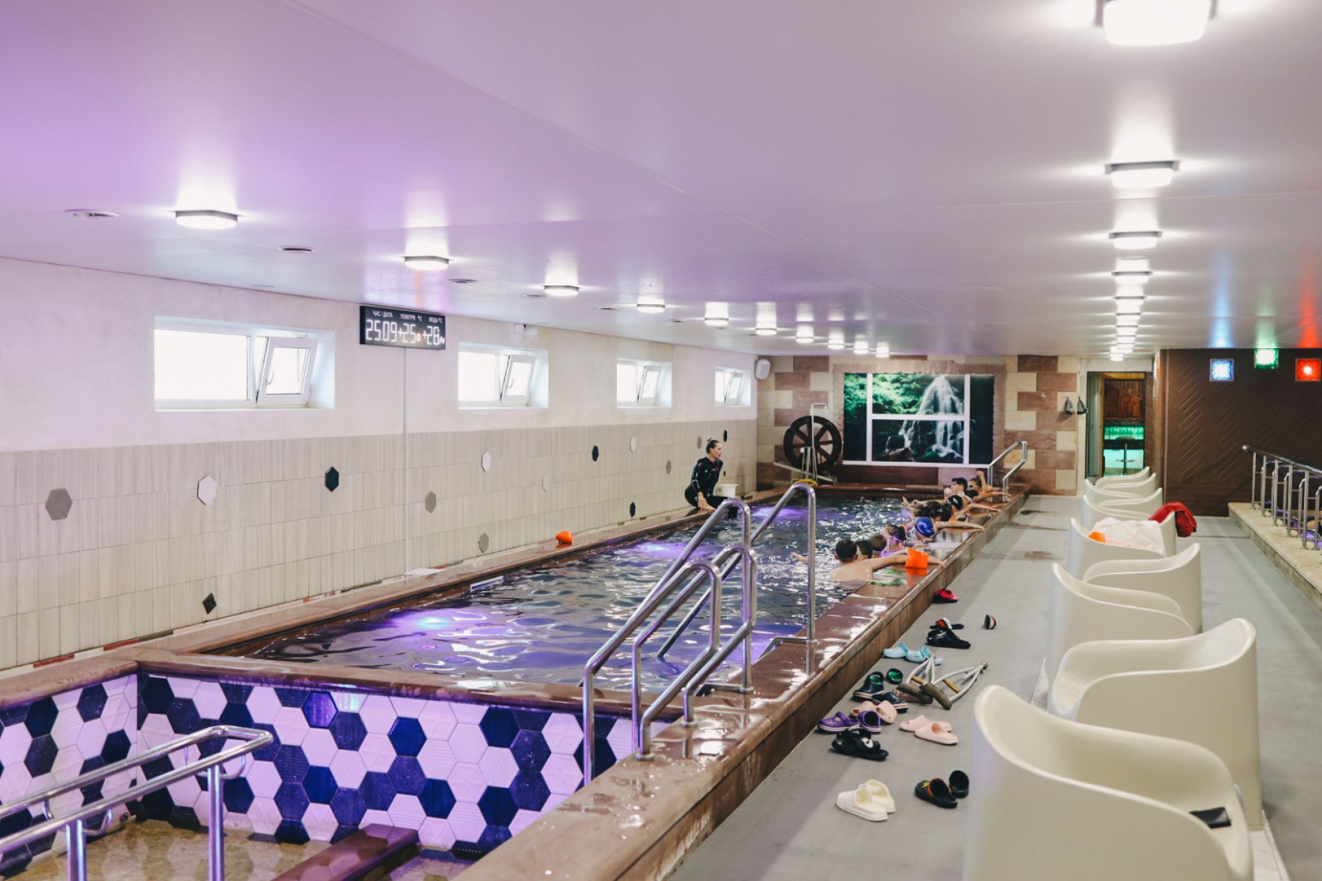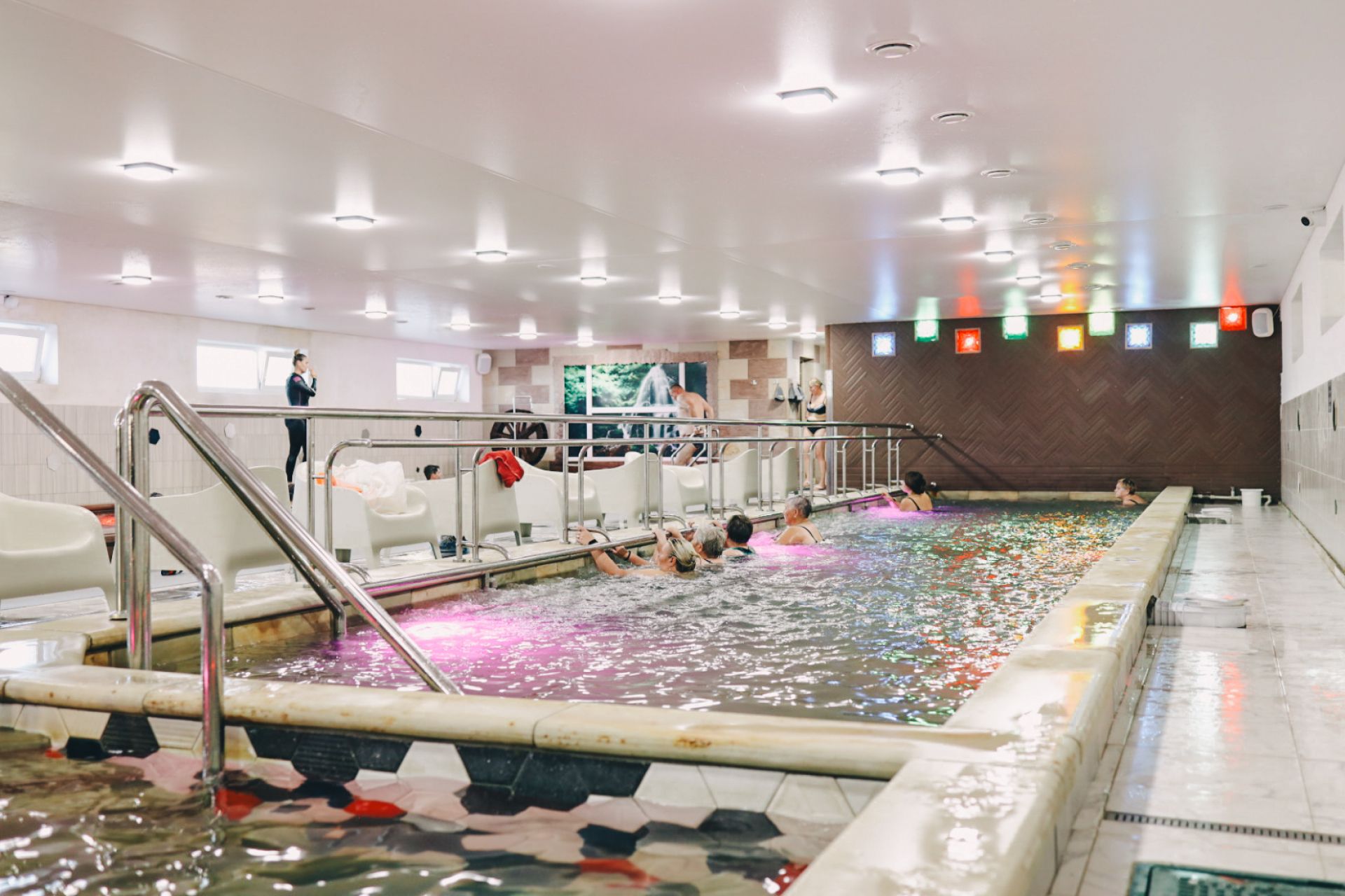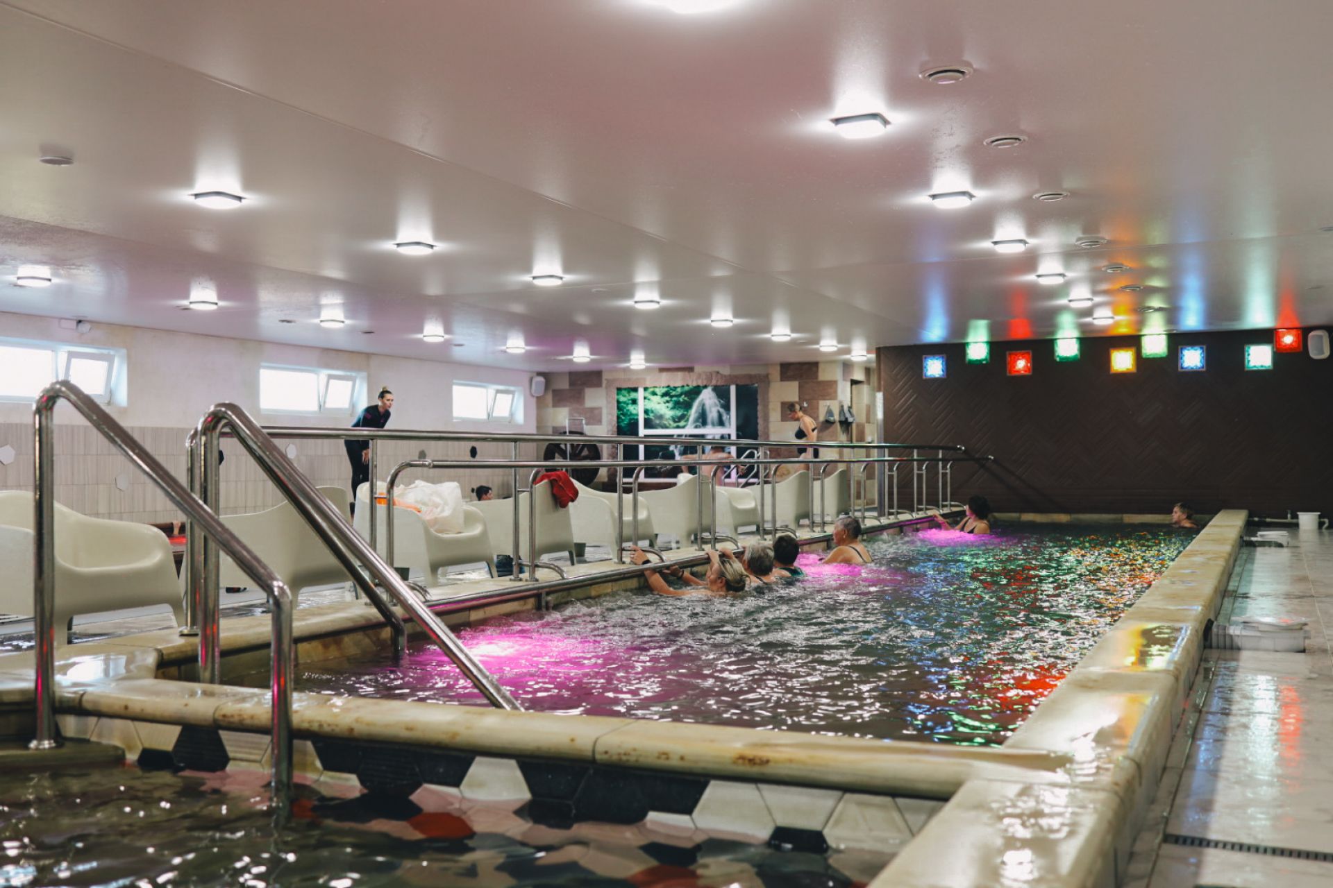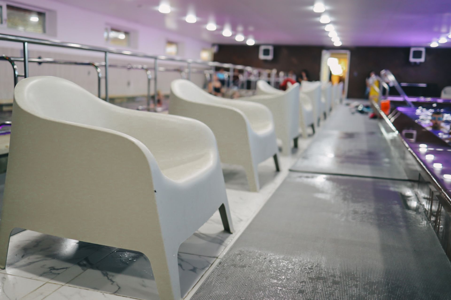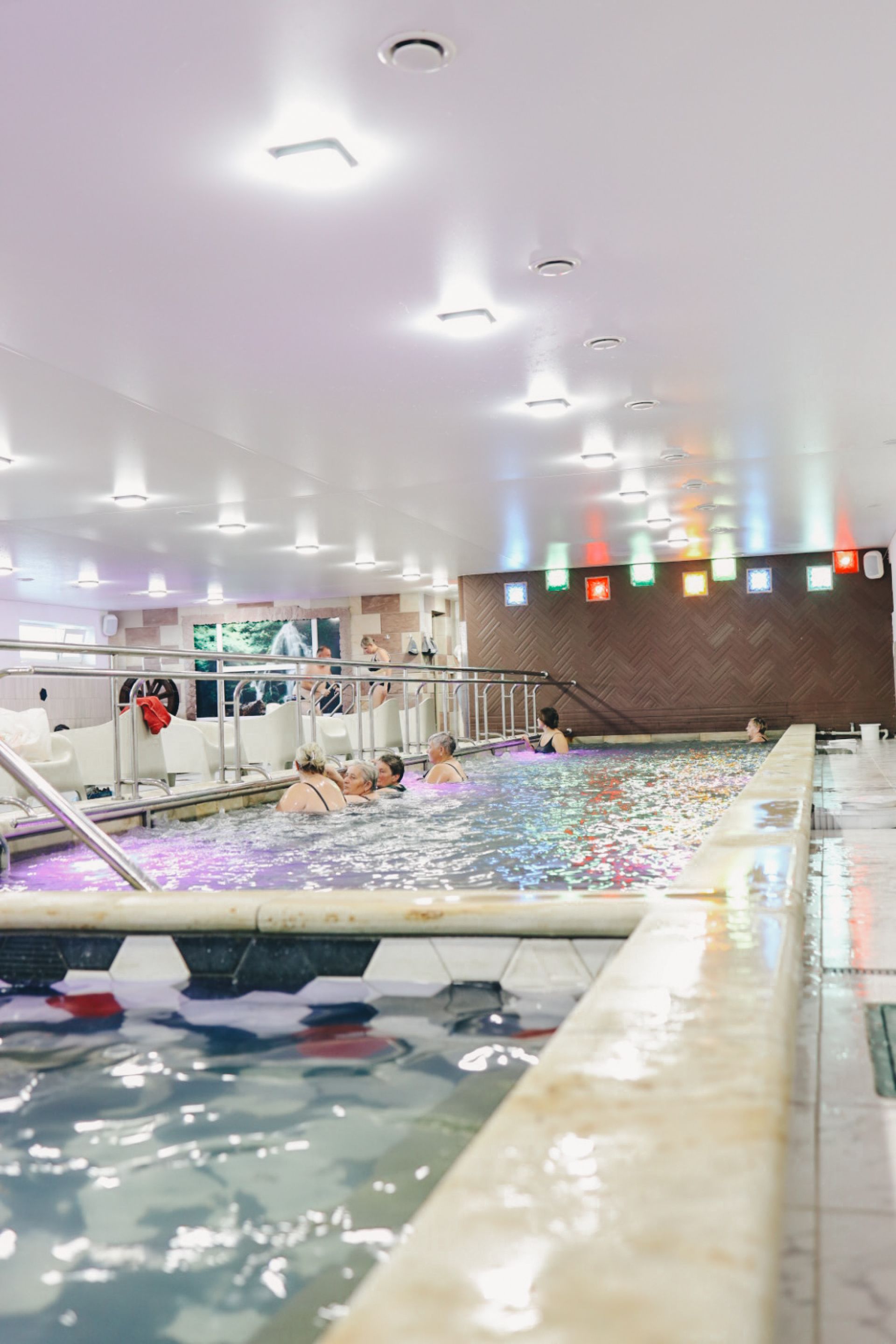 - бішофітний басейн з температурою 30 °C, який має цілющий вплив на організм людини. Цей басейн дає оздоровчий та профілактичний ефект, також сприяє покращенню стану шкіри;