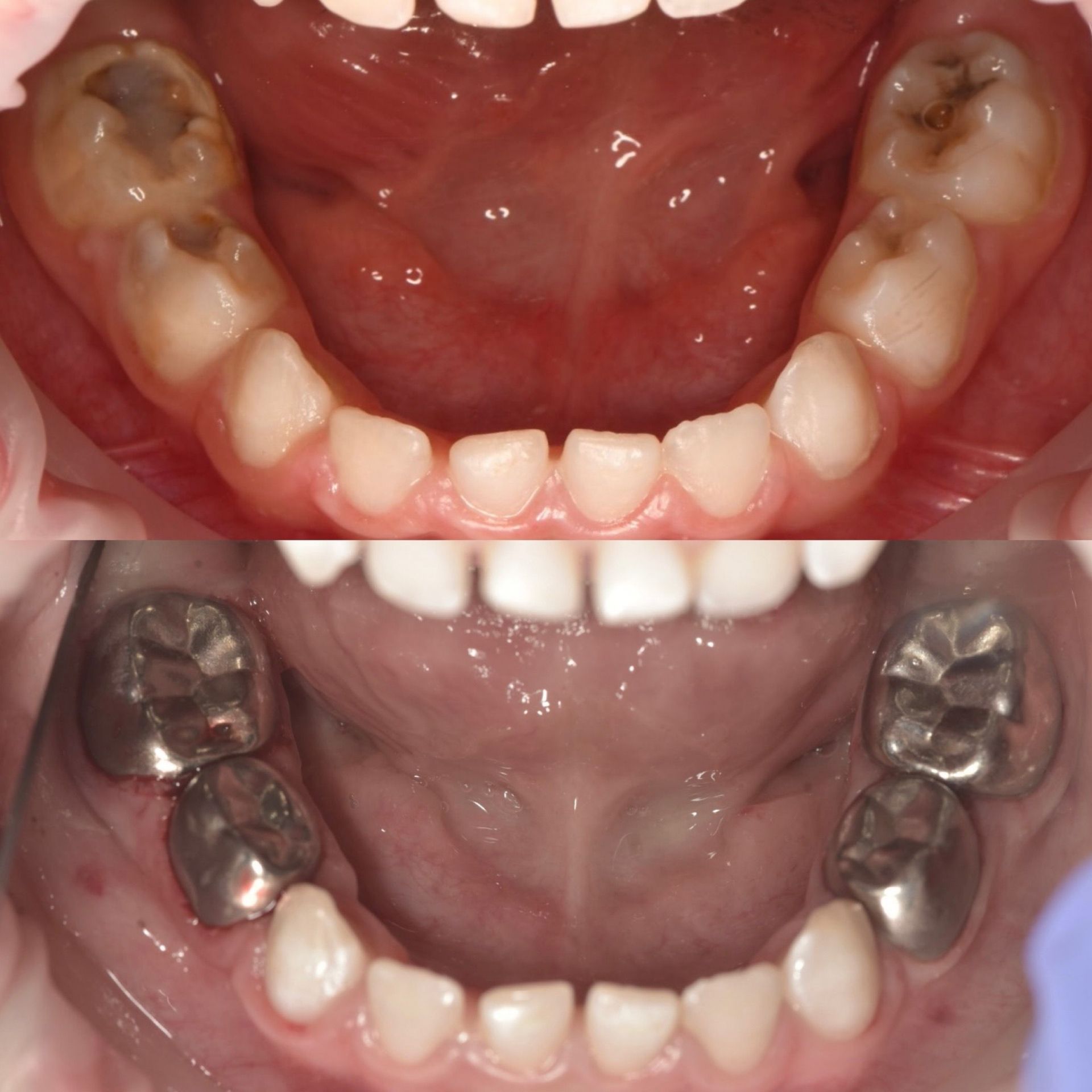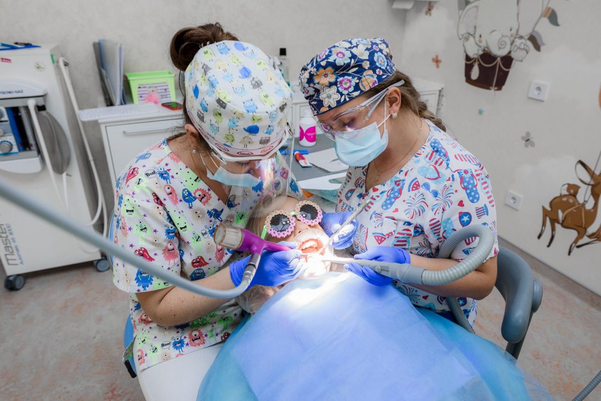 Лікування найменших у клініці відбувається після первинної консультації та психологічної адаптації. За потреби та готовності дитини – лікування може проводитись одразу. Враховуємо психоемоційні особливості дитячого віку та в зрозумілій для дитини ігровій формі адаптовуємо її до стоматологічного лікування. Інколи дитина не може справитись з емоціями та хвилюванням під час лікування. Тоді нам на допомогу приходить заспокійлива седація закисом азоту ( «звеселяючим газом» ), під час дихання яким дитина знаходиться в свідомості та реагує на всі вказівки лікаря. За такий візит можна пролікувати один або декілька зубів навіть найменшим. Якщо ж дитина панічно боїться – ліцензовані лікарі-анестезіологи допоможуть й у найскладніших випадках.