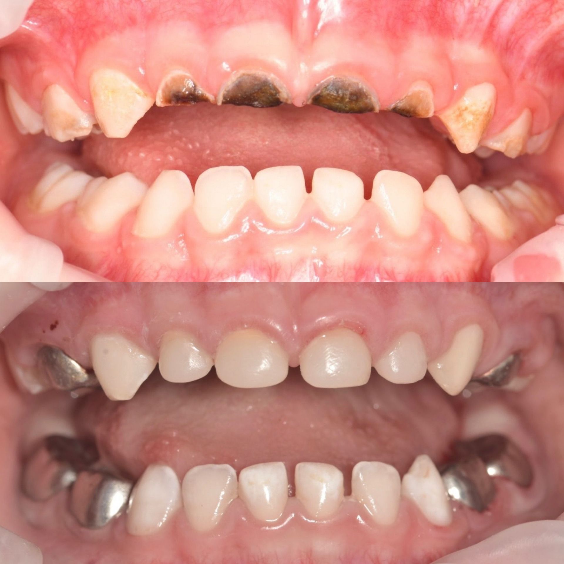 У випадках об’ємного лікування дітям з множинним та ускладненим карієсом - стоматологічна допомога може надаватись під анестезіологічним супроводом (тобто, під наркозом).