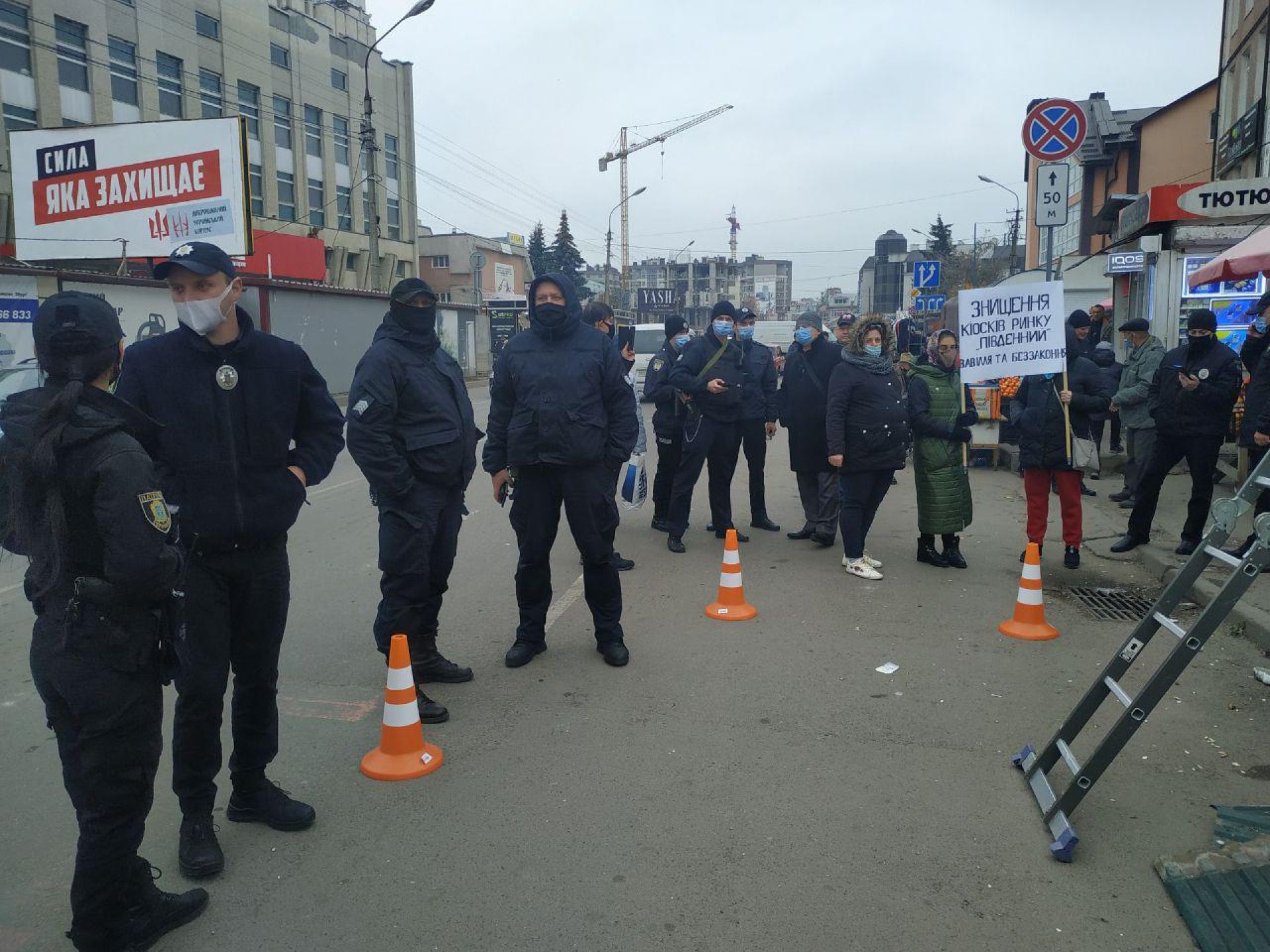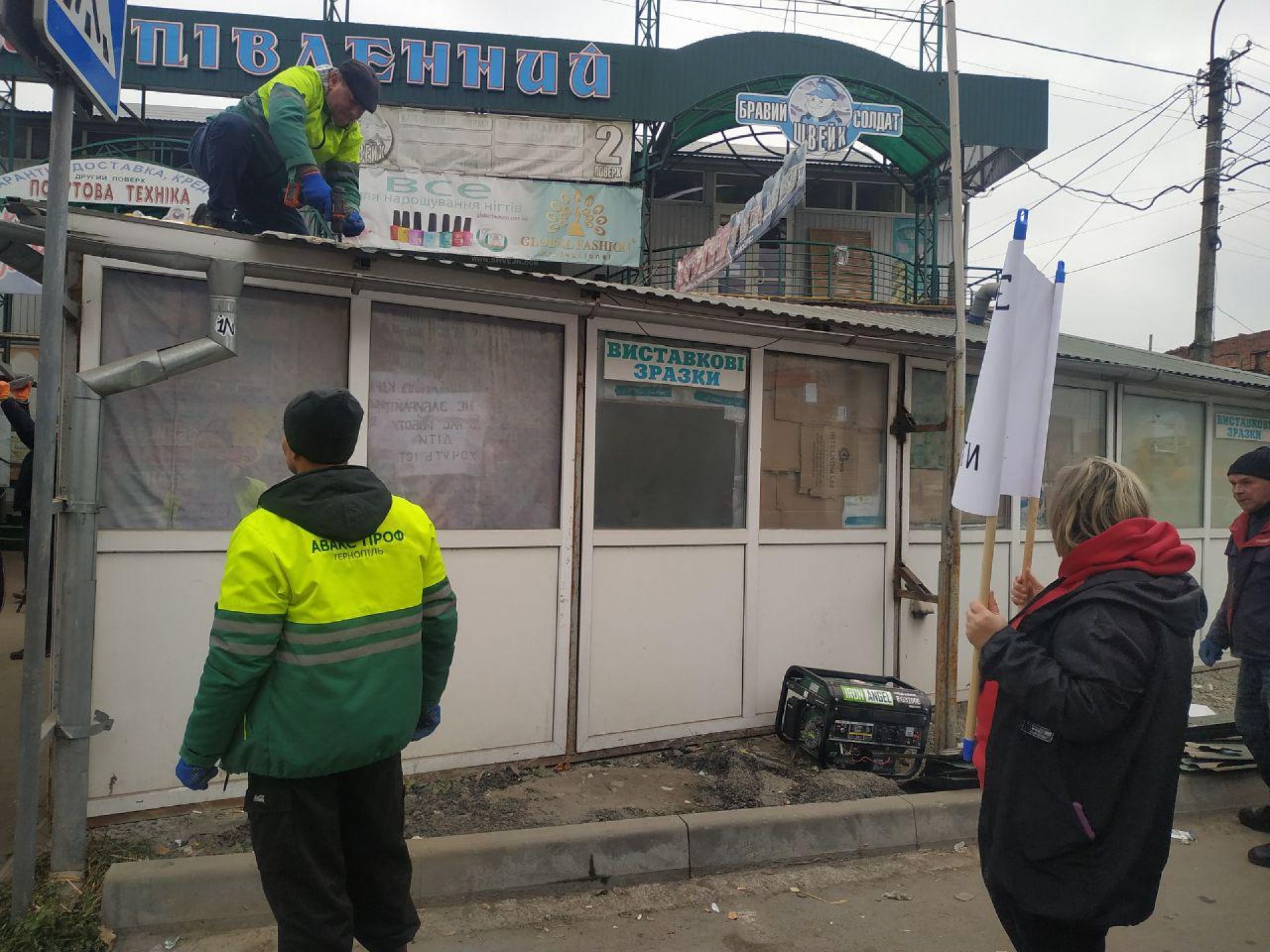 - Зранку 13 листопада кіоски на ринку «Південний» все ж почали демонтувати попри протести підприємців, що там працюють.