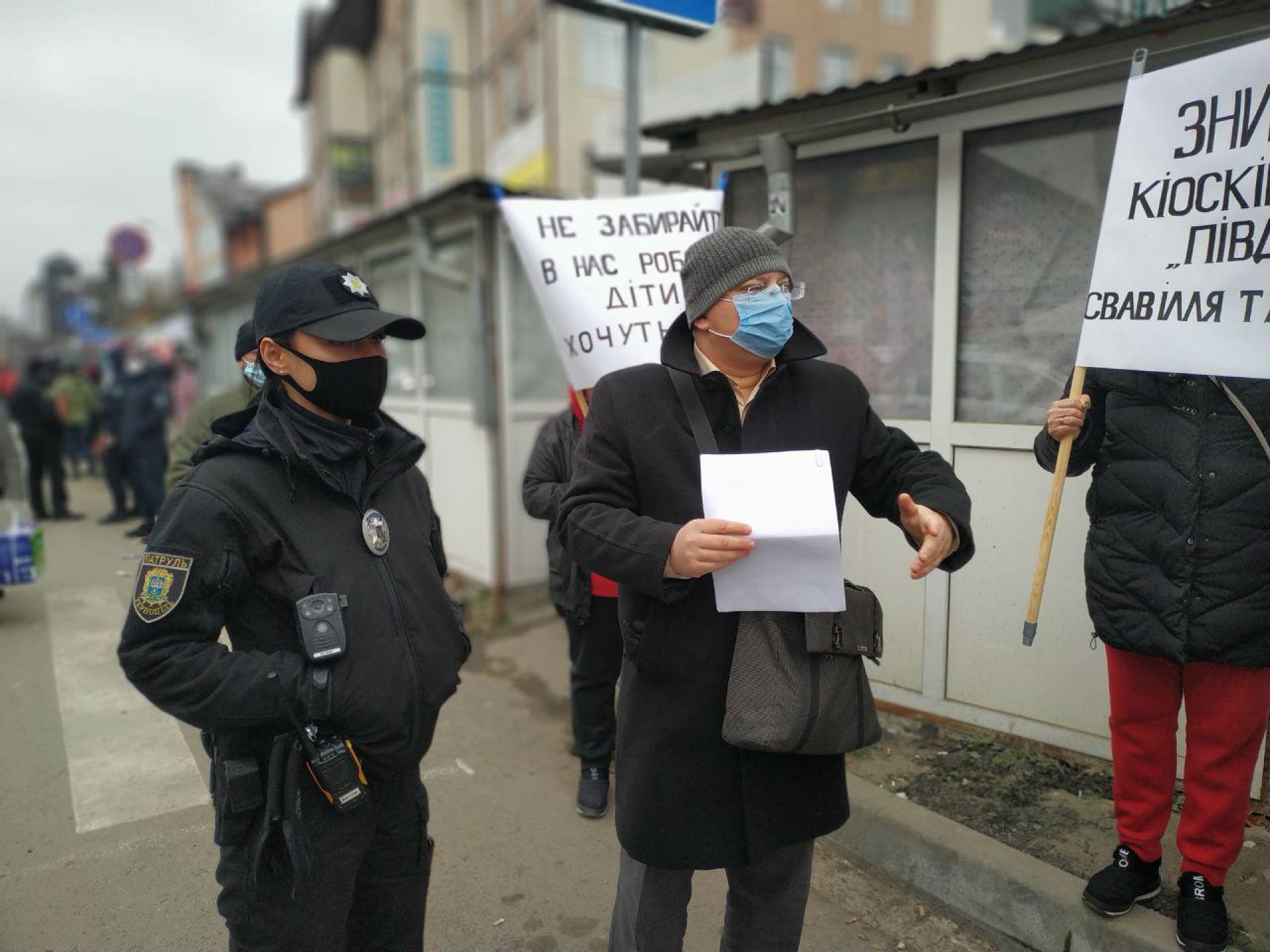 Про демонтаж торгових споруд підприємцям повідомили ще вчора, 12 листопада, а вже сьогодні на місце, де розміщуються кіоски, прибули працівники муніципальної поліції та правоохоронці.