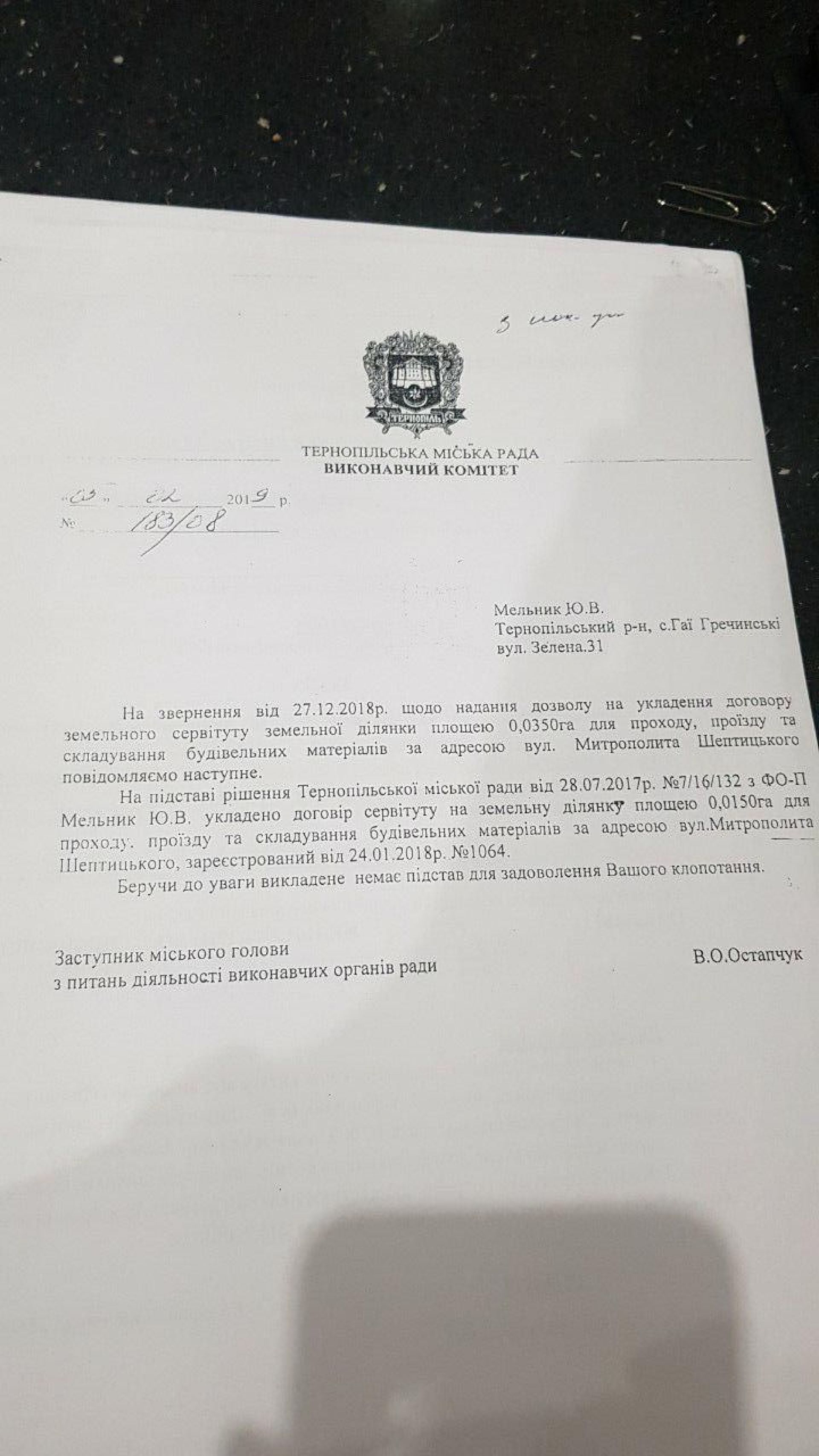 Нагадаємо, раніше пані Зварич пояснила, що у 2017 році підприємець Мельник на умовах договору сервітуту отримав земельну ділянку для проходу, проїзду та складування товарів, оскільки основна будівля, де громадянин Мельник здійснює свою підприємницьку діяльність, потребувала ремонту. Дія договору, за її словами, закінчилася у 2019 році.