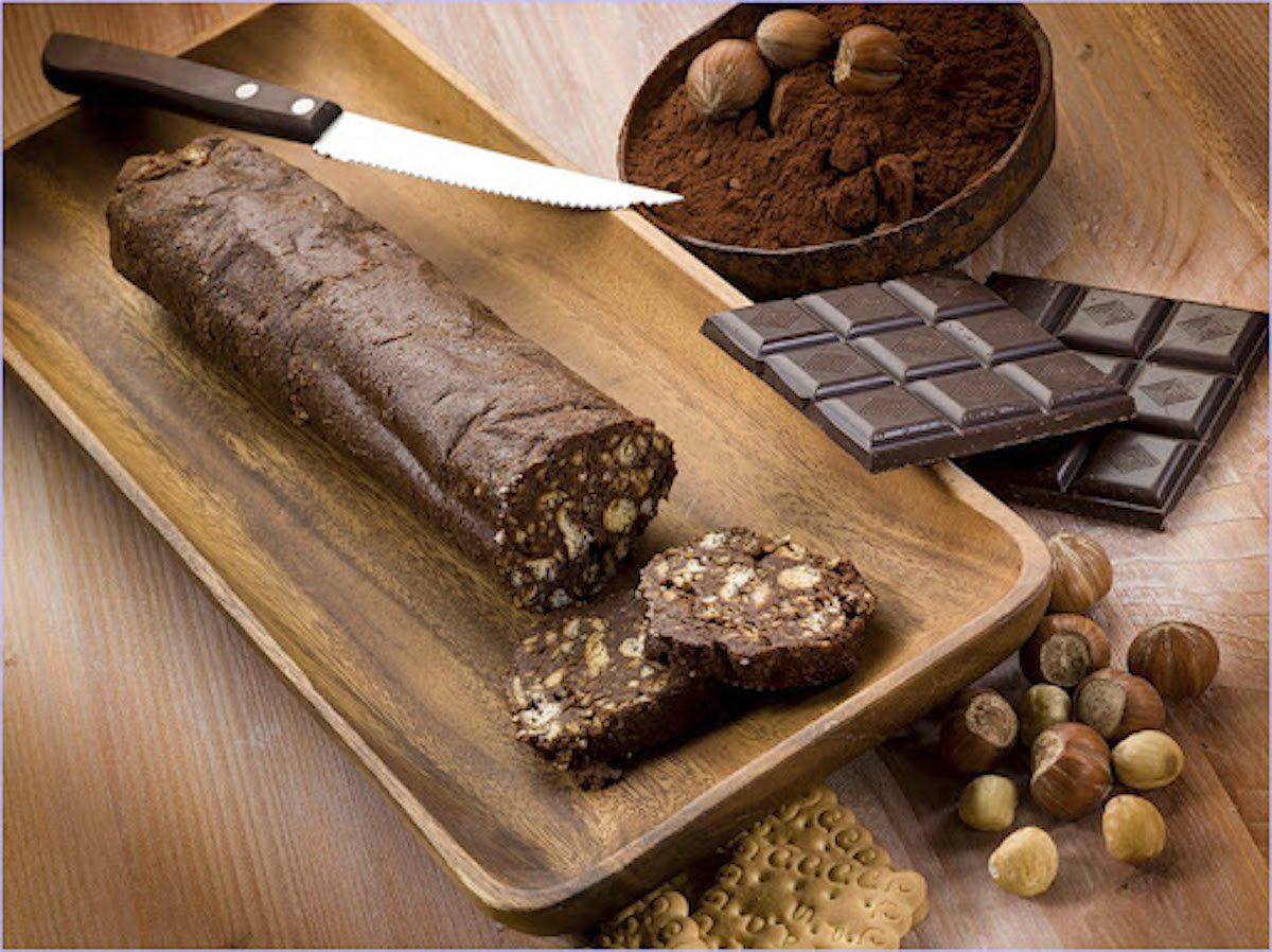 У молоко кімнатної температури додати цукрову пудру і какао, потім вмішати шматочки м'якого масла і горіхи. Перемішати масу до однорідності. Потім додати обидві частини печива. Сформувати ковбаску, загорнути в харчову плівку і поставити в холодне місце для охолодження.