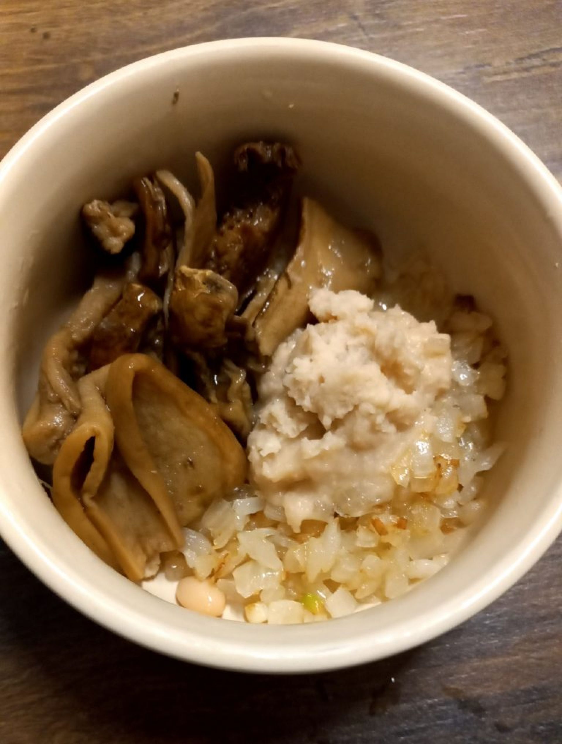 - 40г дрібно порізаної підсмаженої цибулі, 40г перетертої через сито квасолі (решту додати до борщу), 80г варених грибів (з решти грибів та відвару зробити соус: https://www.youtube.com/watch?v=_uqwmDvwwGM).