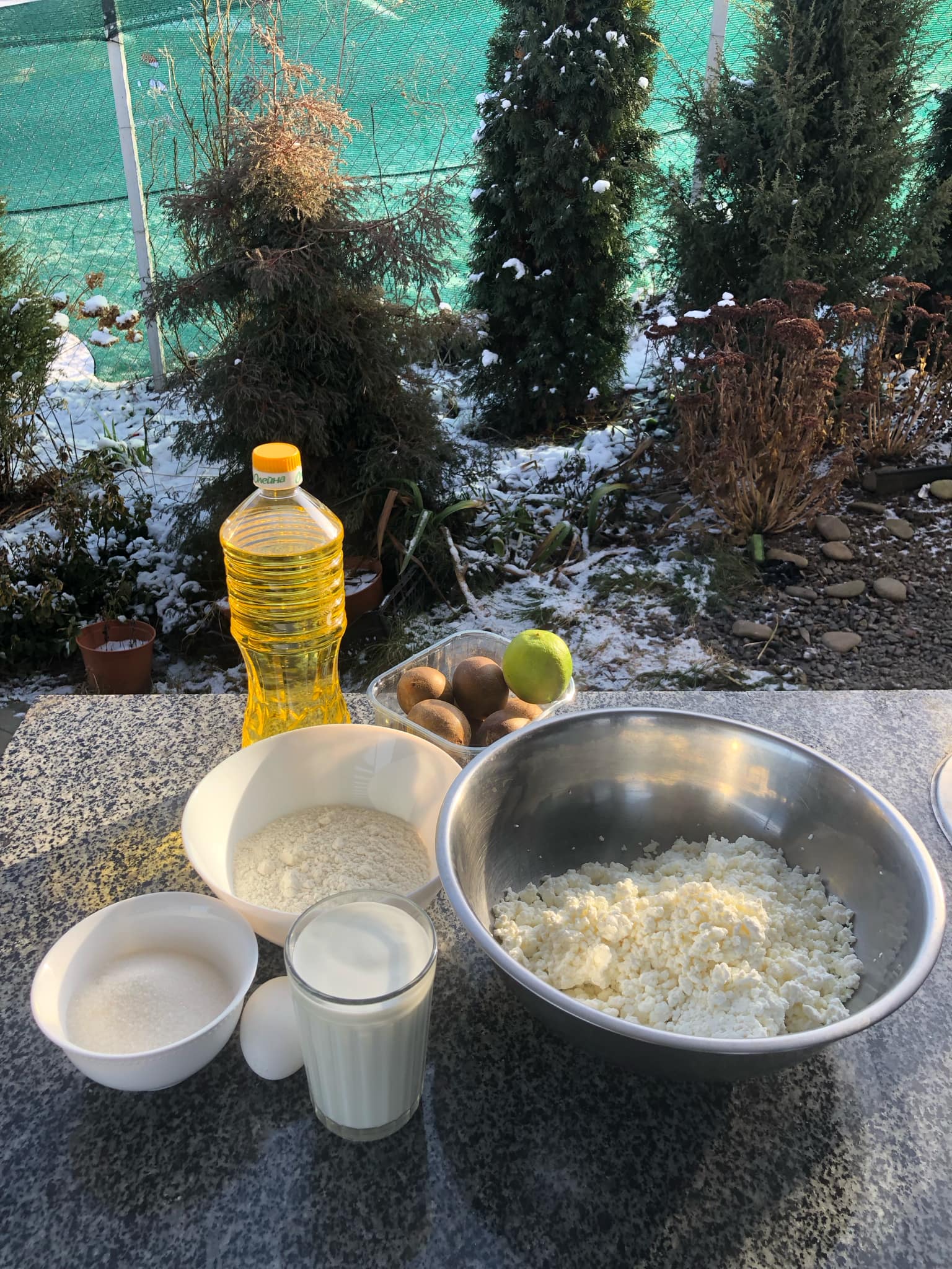 Для приготування тіста на вергуни нам знадобиться кисломолочний сир, борошно, яйце, цукор, ваніль, кефір. Для джему – ківі, цукор, лайм. Для смаження смаколиків треба багато олії