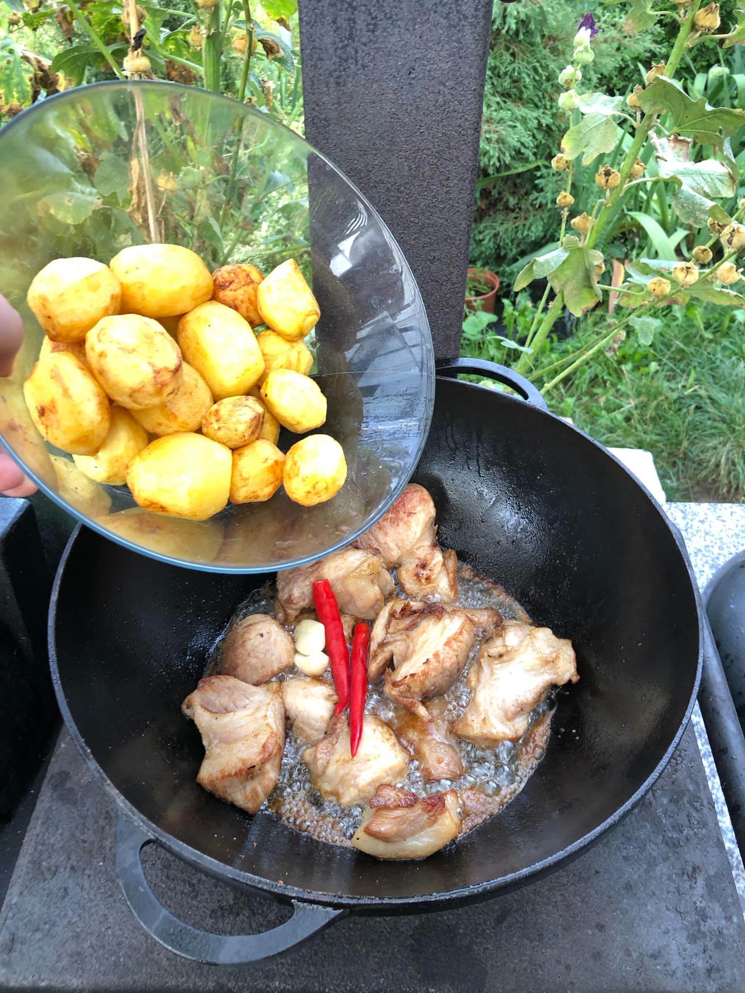 Казан-кебаб популярна страва в країнах Близького Сходу та Кавказу. Якщо спрощено її описувати, то це картопля та м'ясо добре просмажені на жирі, а потім протушковані. Щоправда, зважаючи на традиції та релігію, там зазвичай використовують соняшникову чи бавовняну олію, а також яловичину чи баранину. Наша страва буде адаптованою під місцеві вподобання та продукти, а тому використаємо сало та свинину.