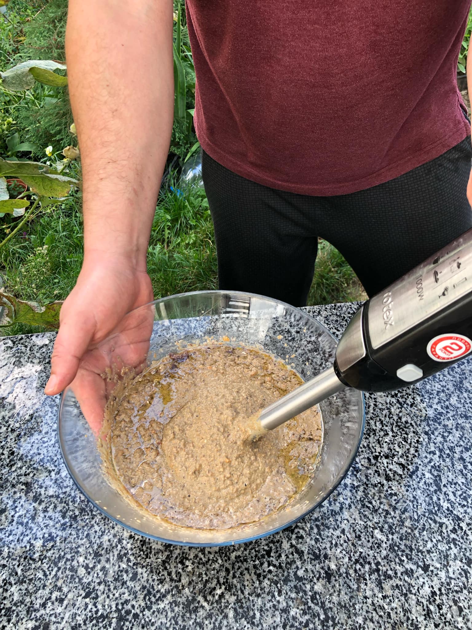 Все, що запікали, засипаємо в глибоку посудину та добре перебиваємо блендером. Якщо його немає – можна перебити товкачем для картоплі. Але це довше і важче
