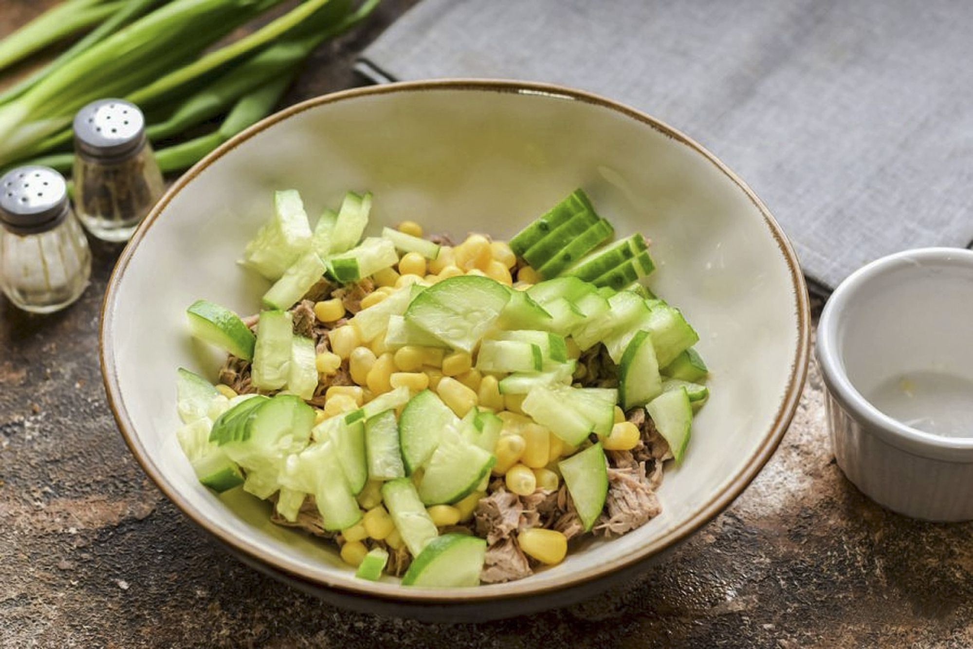 Дієтично: листковий салат з куркою, огірками і кукурудзою