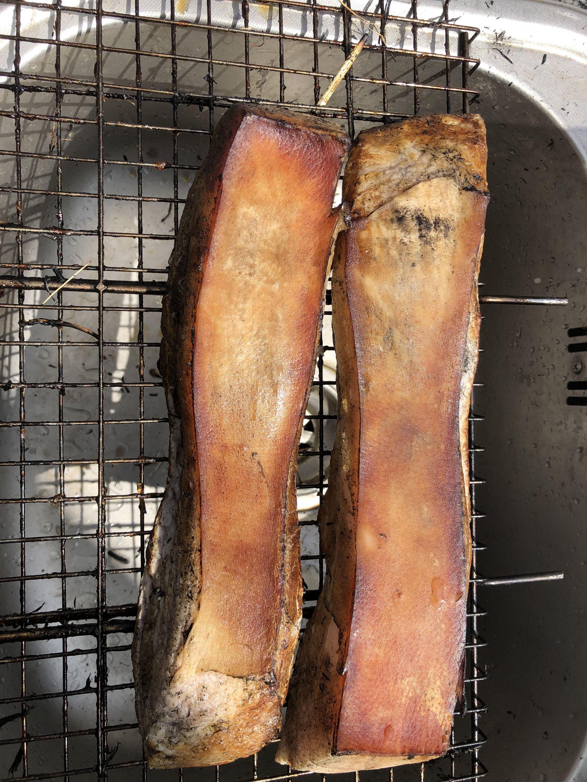 Коли грудинка остигне – помийте її у проточній воді. Це забере зайву гіркоту і вже точно не залишиться нічого зайвого. Просушіть