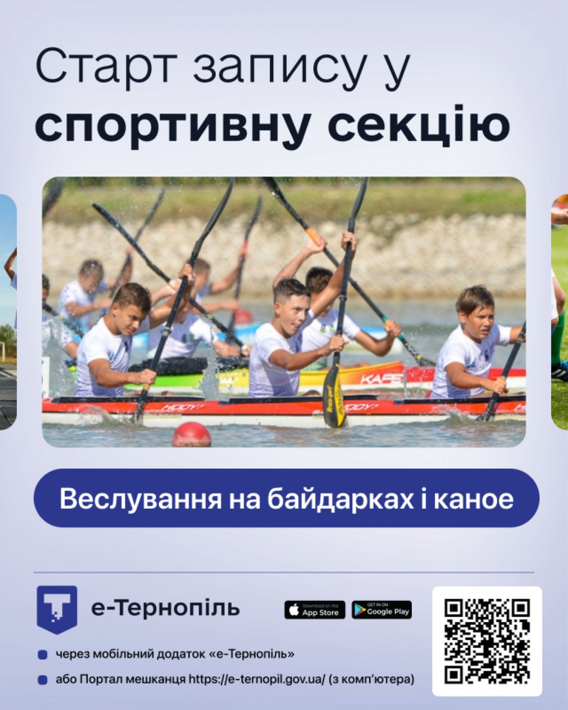 1 вересня о 12.00 у Тернополі розпочалася реєстрація дітей у групи початкової підготовки з різних видів спорту, що діють у комунальних дитячо-юнацьких спортивних школах міської ради.