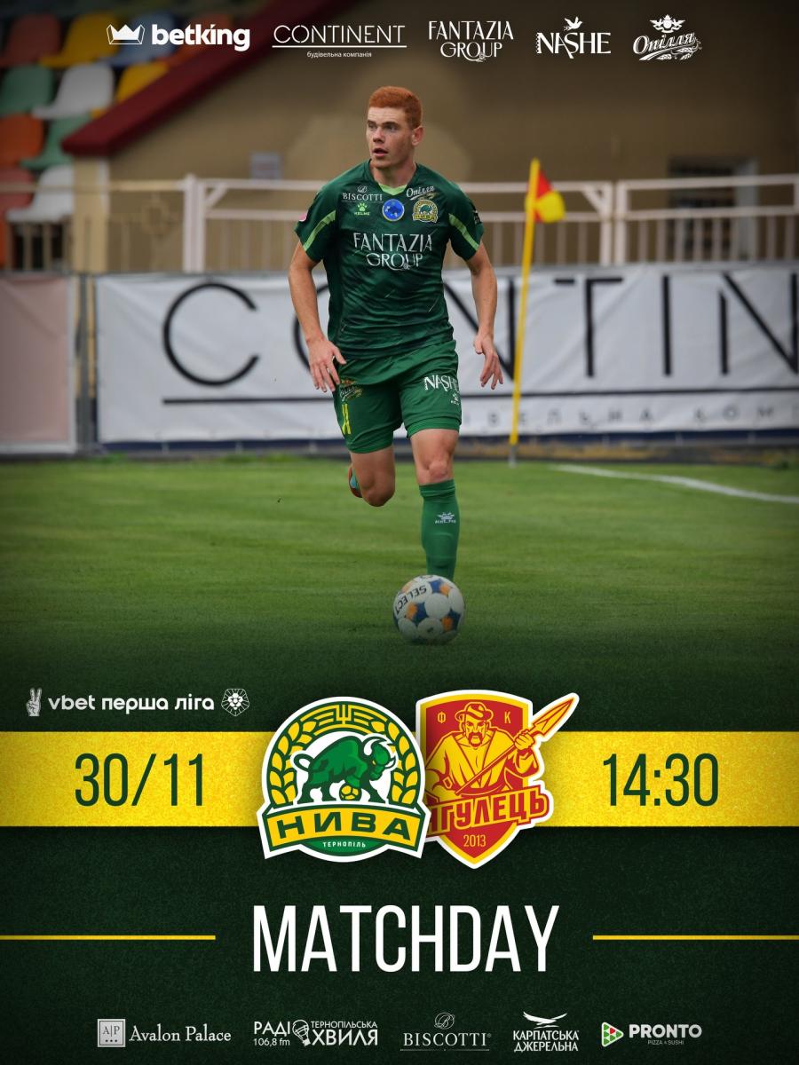 30 листопада на Центральному стадіоні Тернополя тернопільська «Нива» прийматиме «Інгулець» з Кіровоградщини. Початок зустрічі о 14.30.
