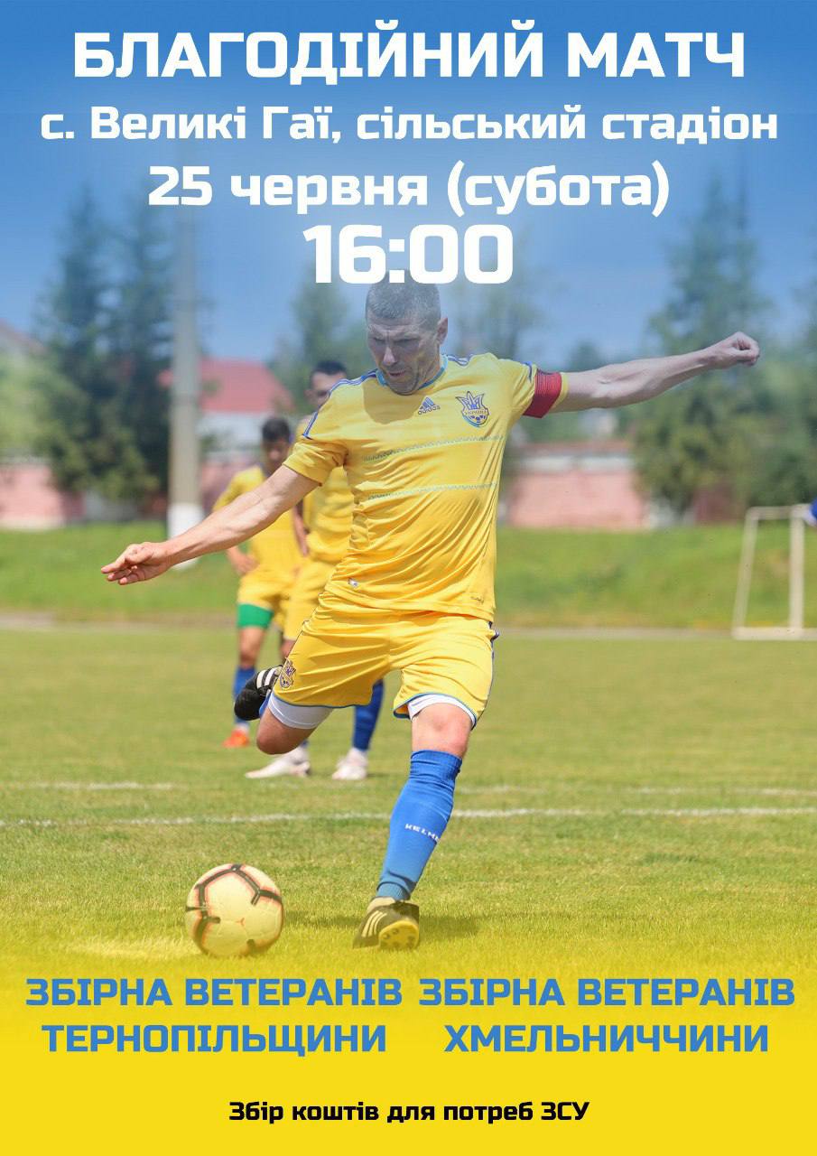 На сільському стадіоні у Великих Гаях відбудеться протистояння збірної ветеранів футболу Тернопільщини проти їх колег з Хмельницької області. Початок поєдинку заплановано на 16:00. З ініціативою проведення матчу виступили представники тернопільської команди ветеранів