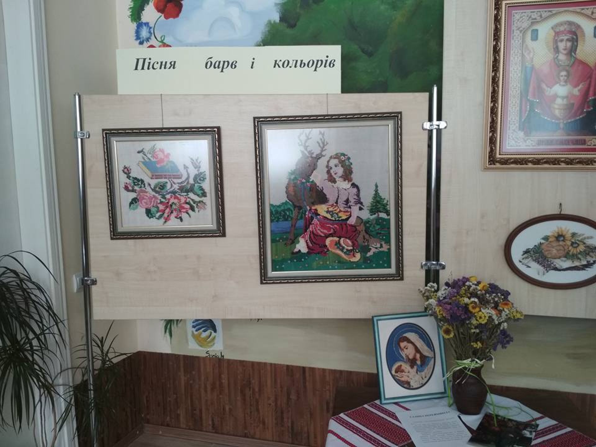 Вишиті ікони, картини, сукні, блузки, сорочки, а також кофти та інші вироби, плетені гачком, представлені на дебютній виставці «Пісня барв і кольорів» тернопільської вишивальниці, учасниці творчого об’єднання «Берегиня» Галини Переймибіди. Експозицію відкрили 27 лютого у Тернопільській бібліотеці № 4 для дорослих «Етно-центр». Оглянути рукотвори майстрині і записатися до неї на безкоштовні майстер-класи можна до 15 березня.