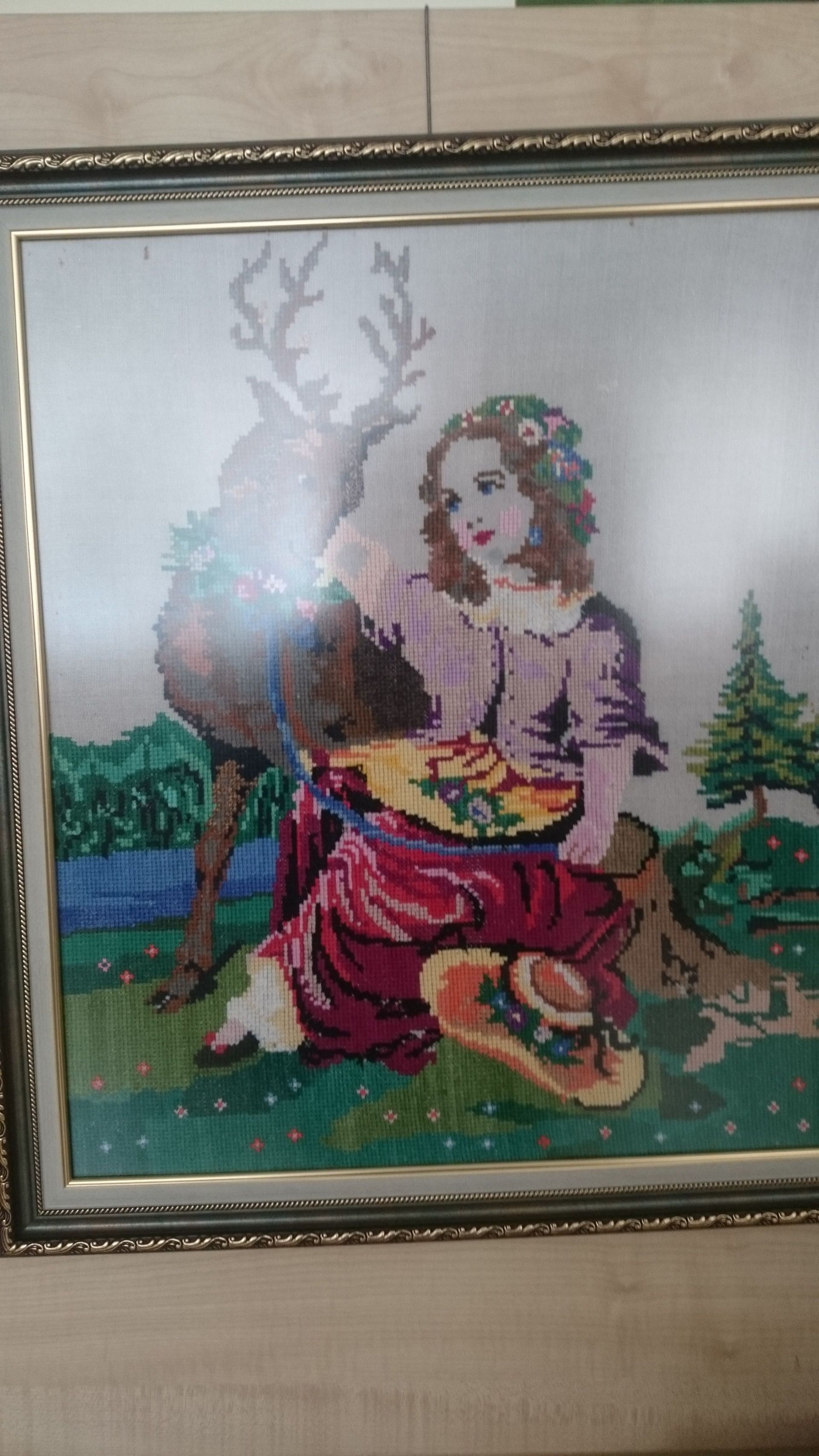 Галина Переймибіда розповіла, що захоплення вишивкою передалося їй чи не на генетичному рівні. Адже цим видом народного мистецтва займалася її бабуся Ганна Володимирівна і мама Лариса Павлівна. На виставці пані Галина представила дві картини, які вишила її мама ще в юному віці. Цим роботам уже майже 60 років.