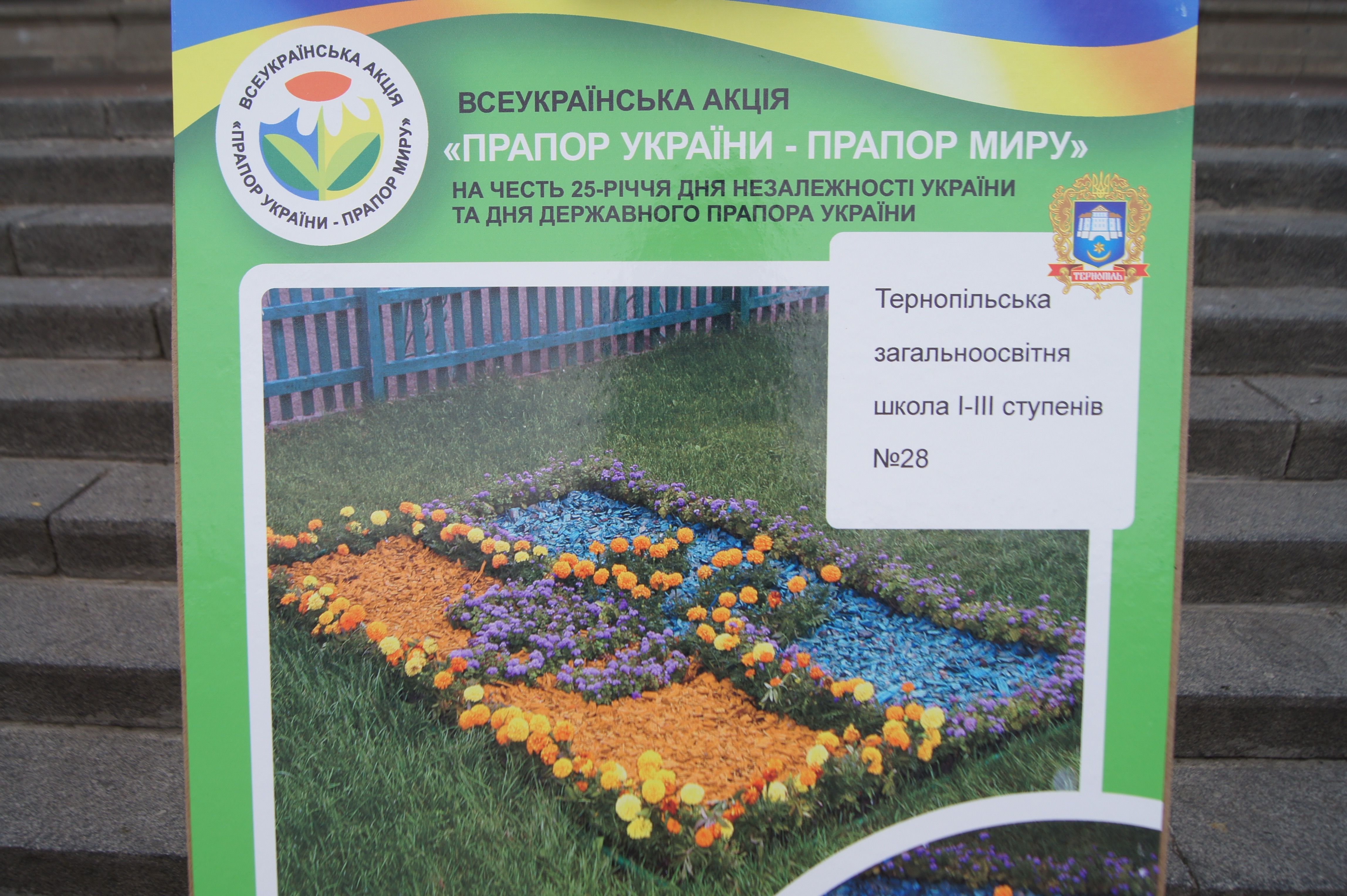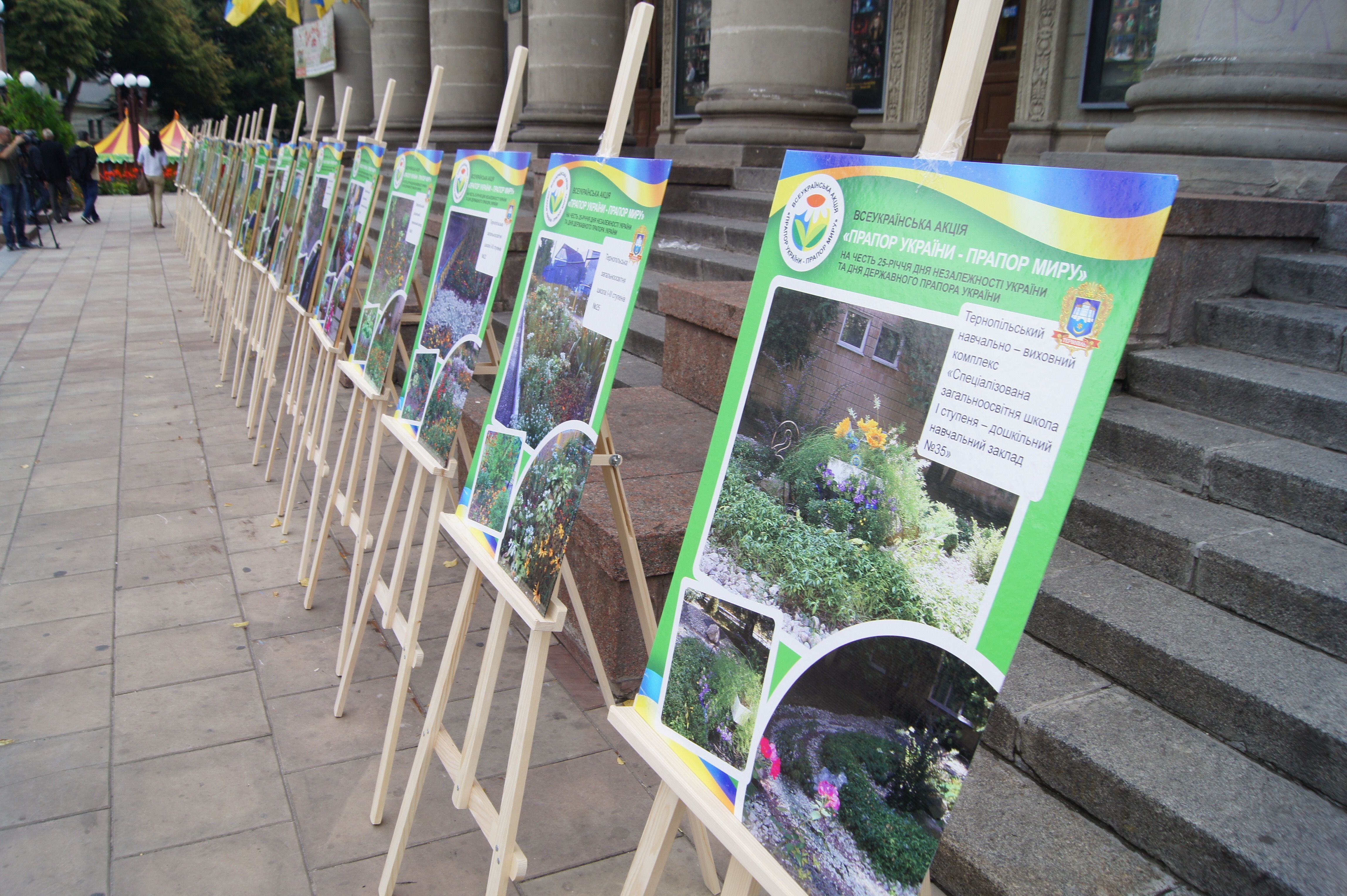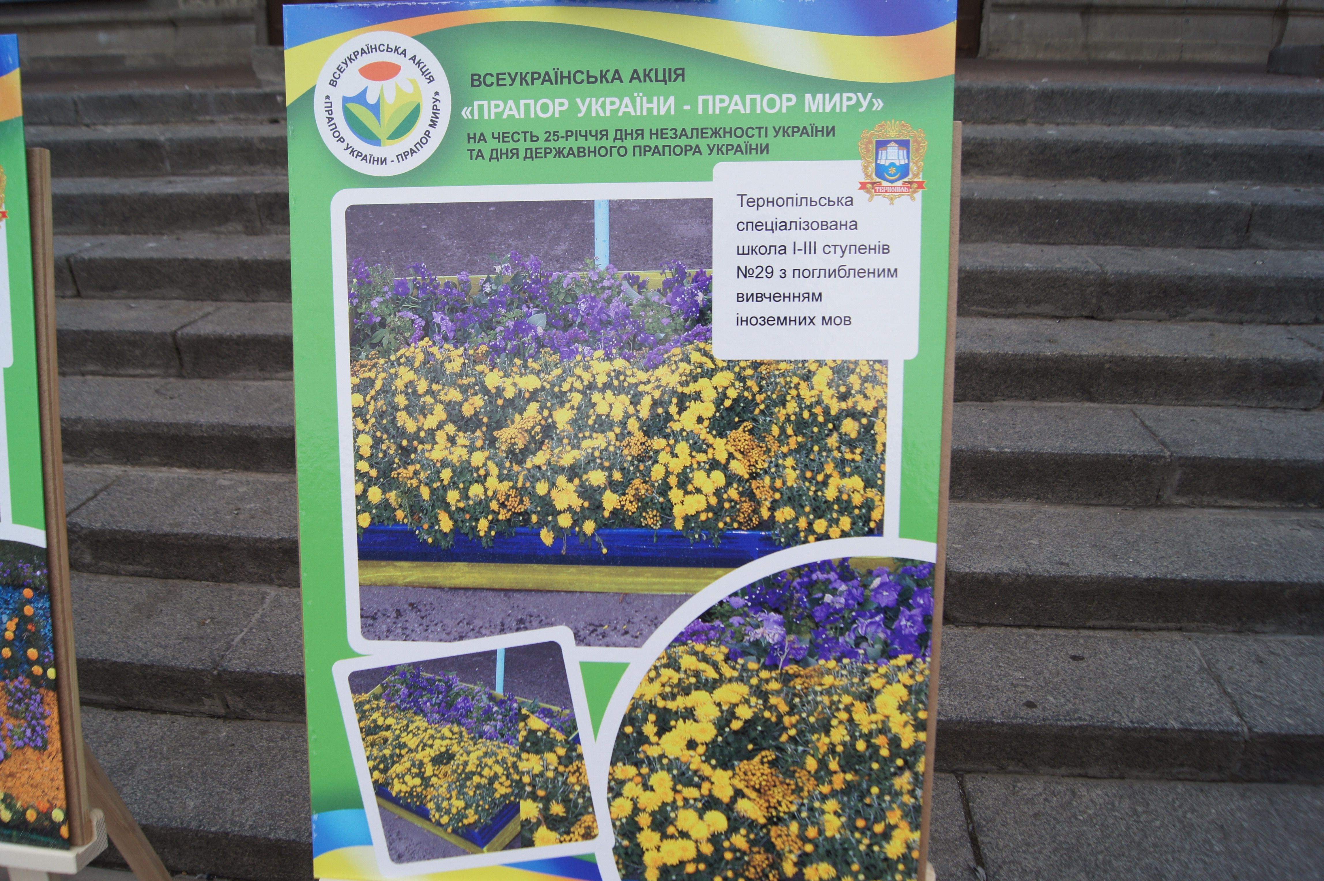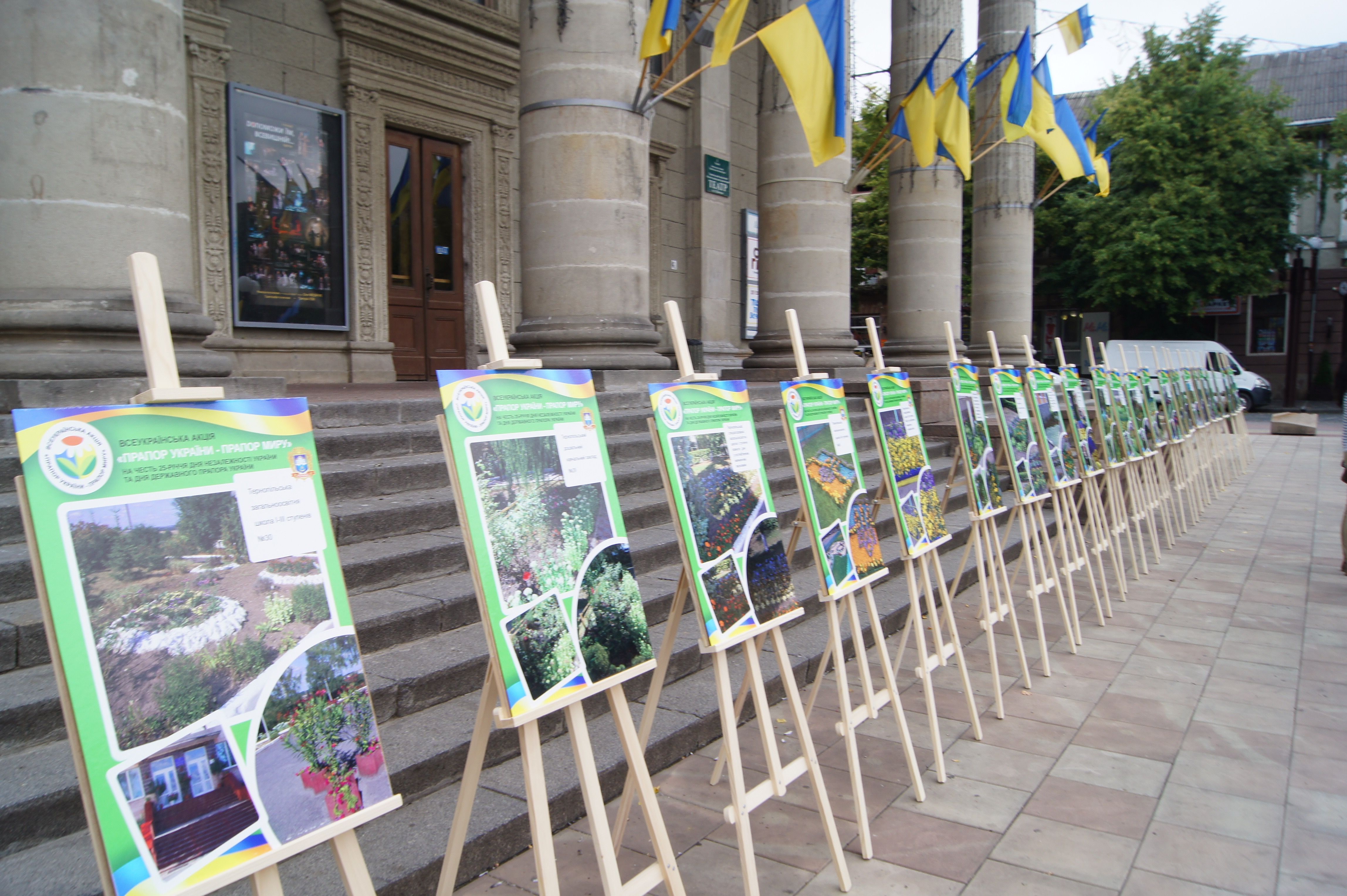 Виставку світлин переможців шкільного конкурсу клумб у вигляді прапора відкрили на Театральному майдані у вівторок, 23 серпня.