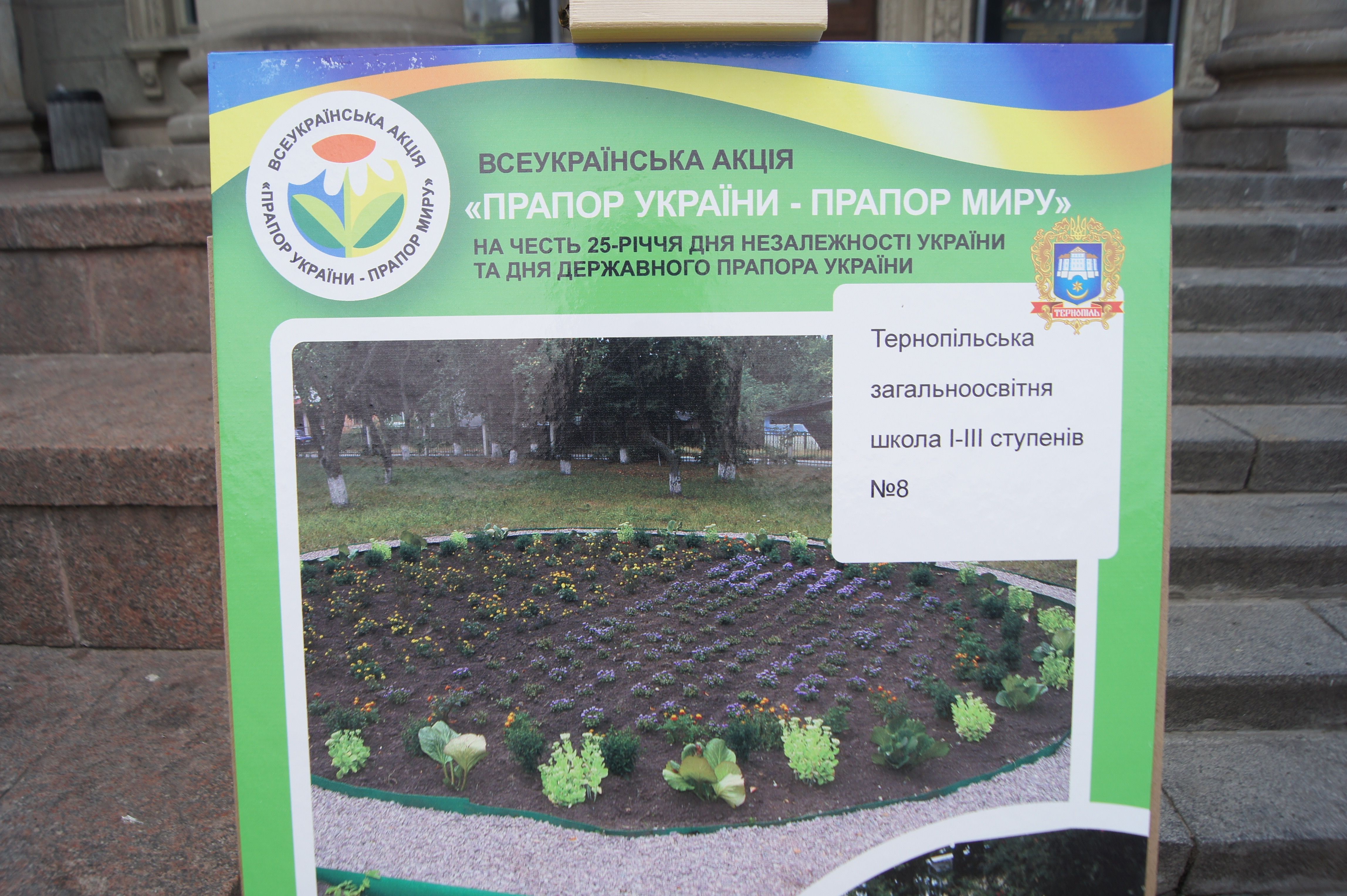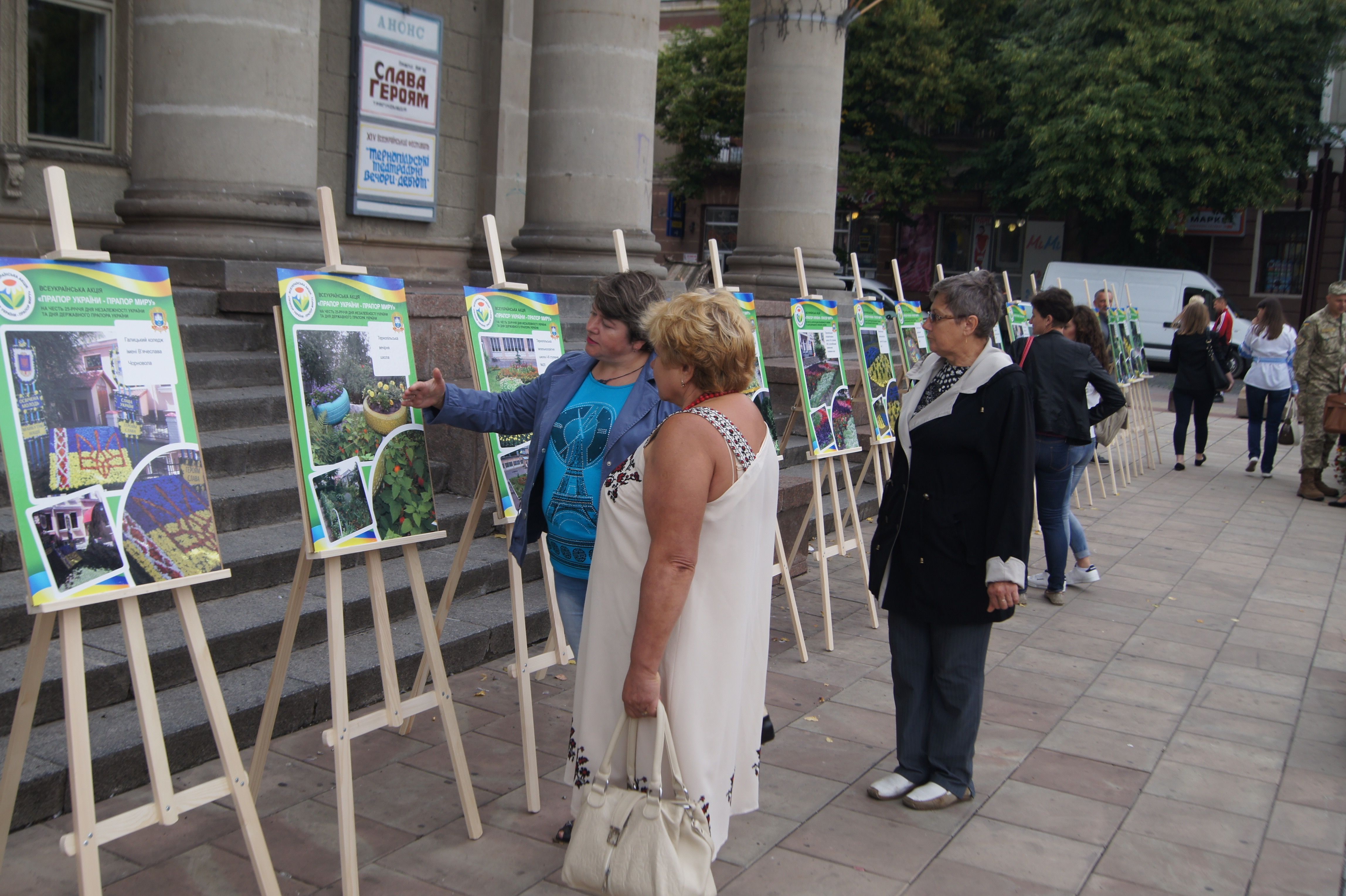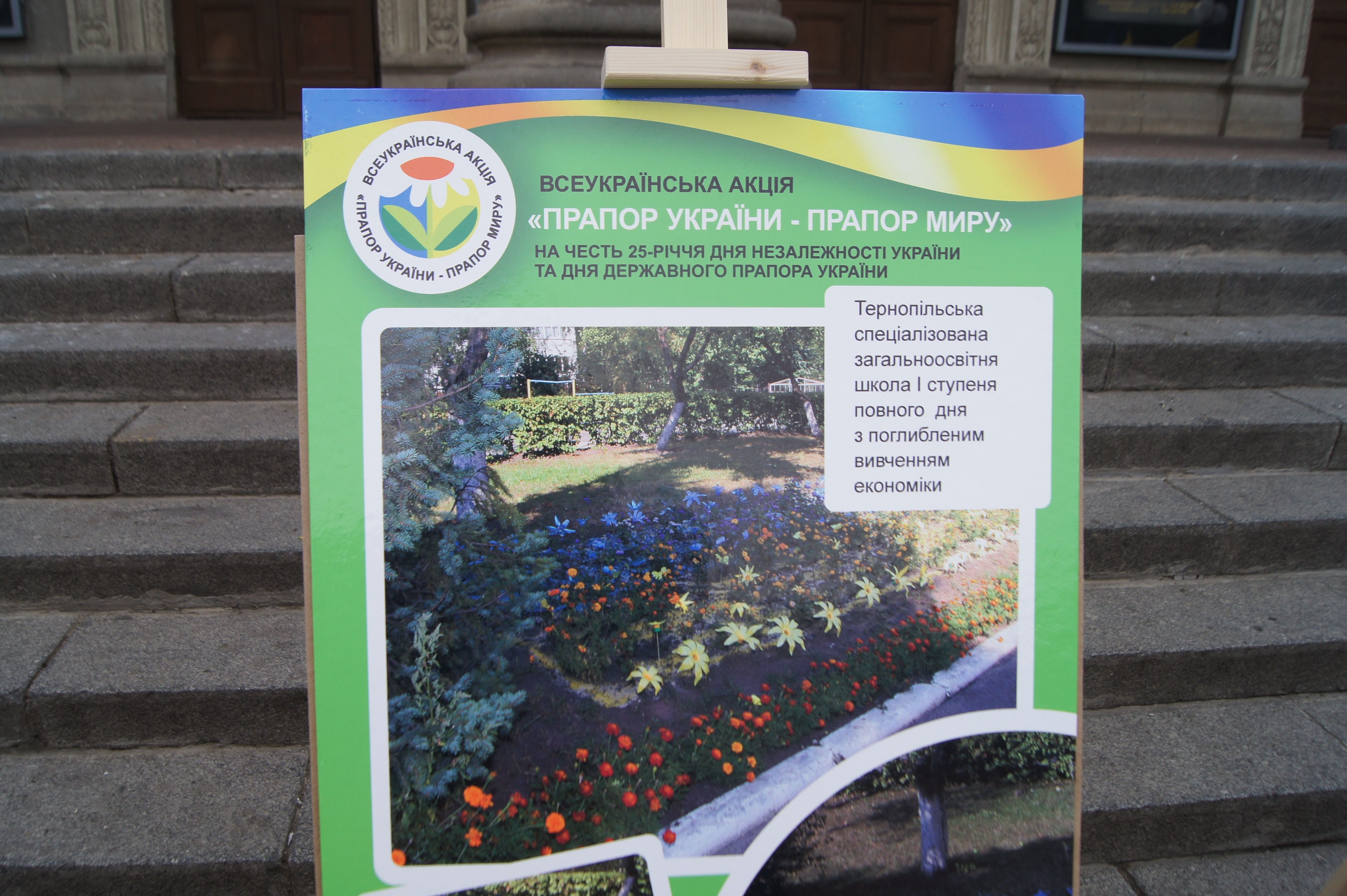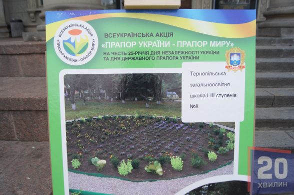 Виставку світлин переможців шкільного конкурсу клумб у вигляді прапора відкрили на Театральному майдані у вівторок, 23 серпня.