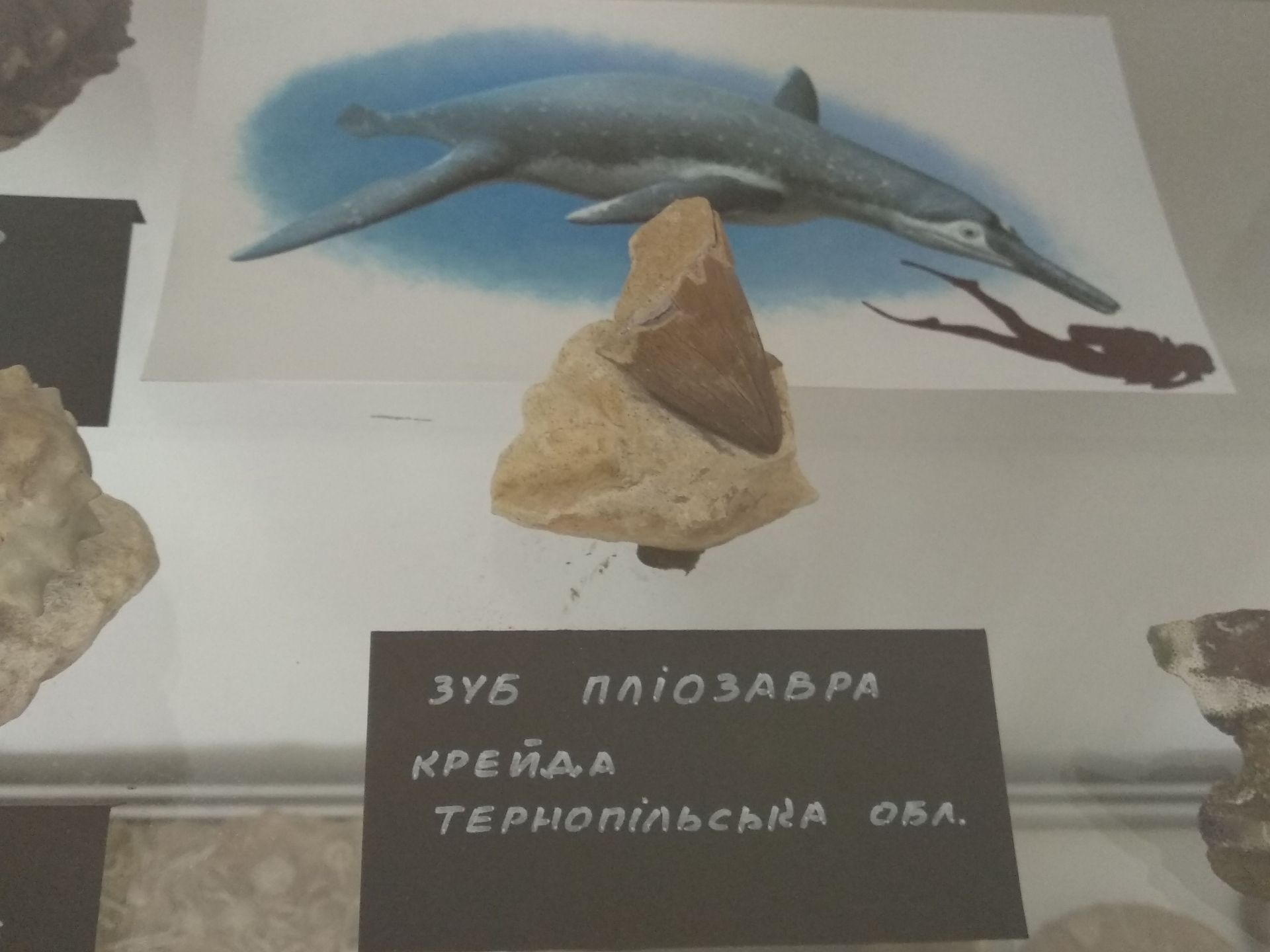 Є у колекції і зуби динозаврів, які пан Одександр придбав та обміняв. Зокрема, зуби кархарадонтозавра та мазозавра з Марокко. Вони жили близько 65-70 млн років тому. А ось зуб пліозавра колекціонер знайшов в Тернопільській області.