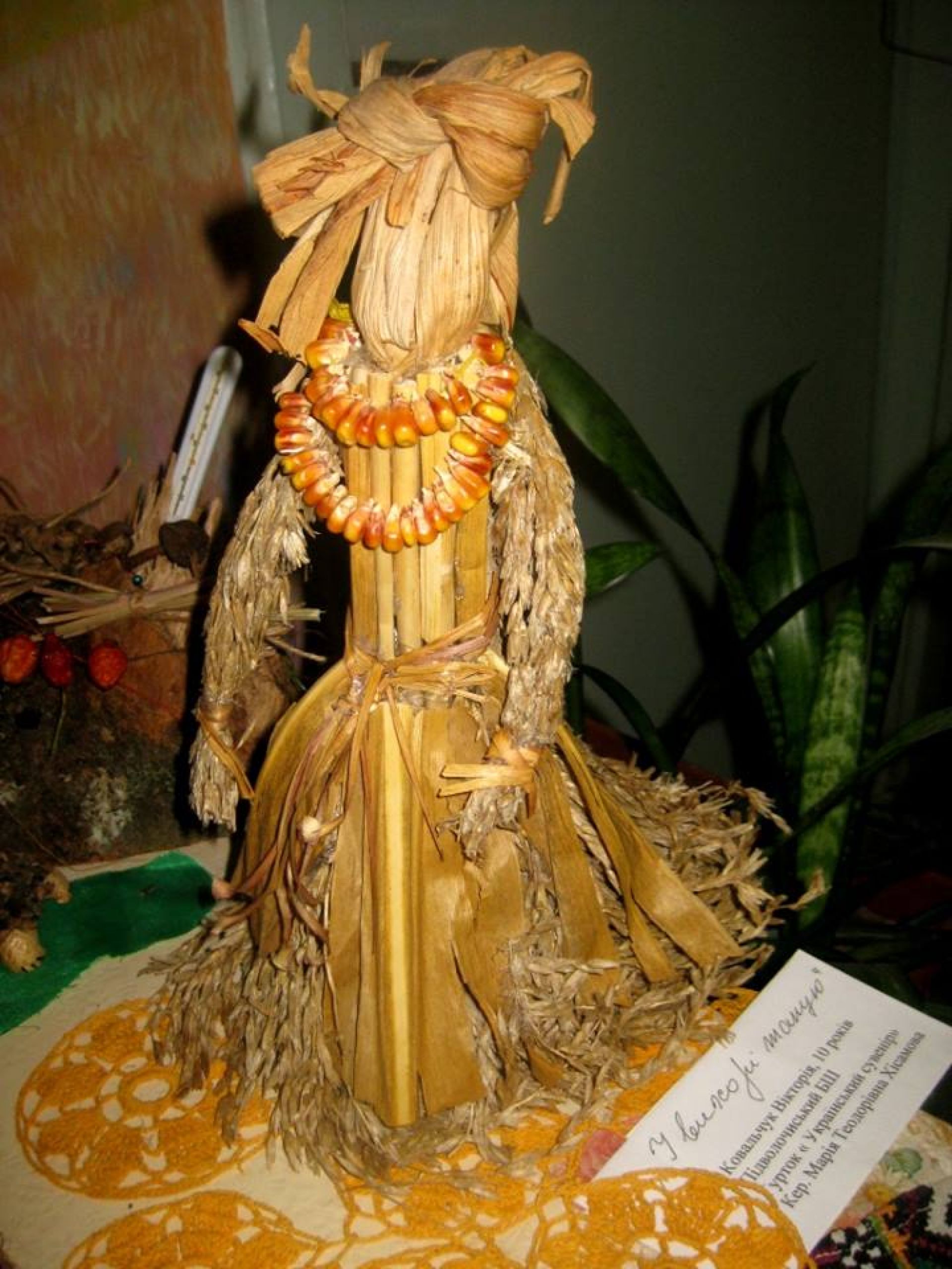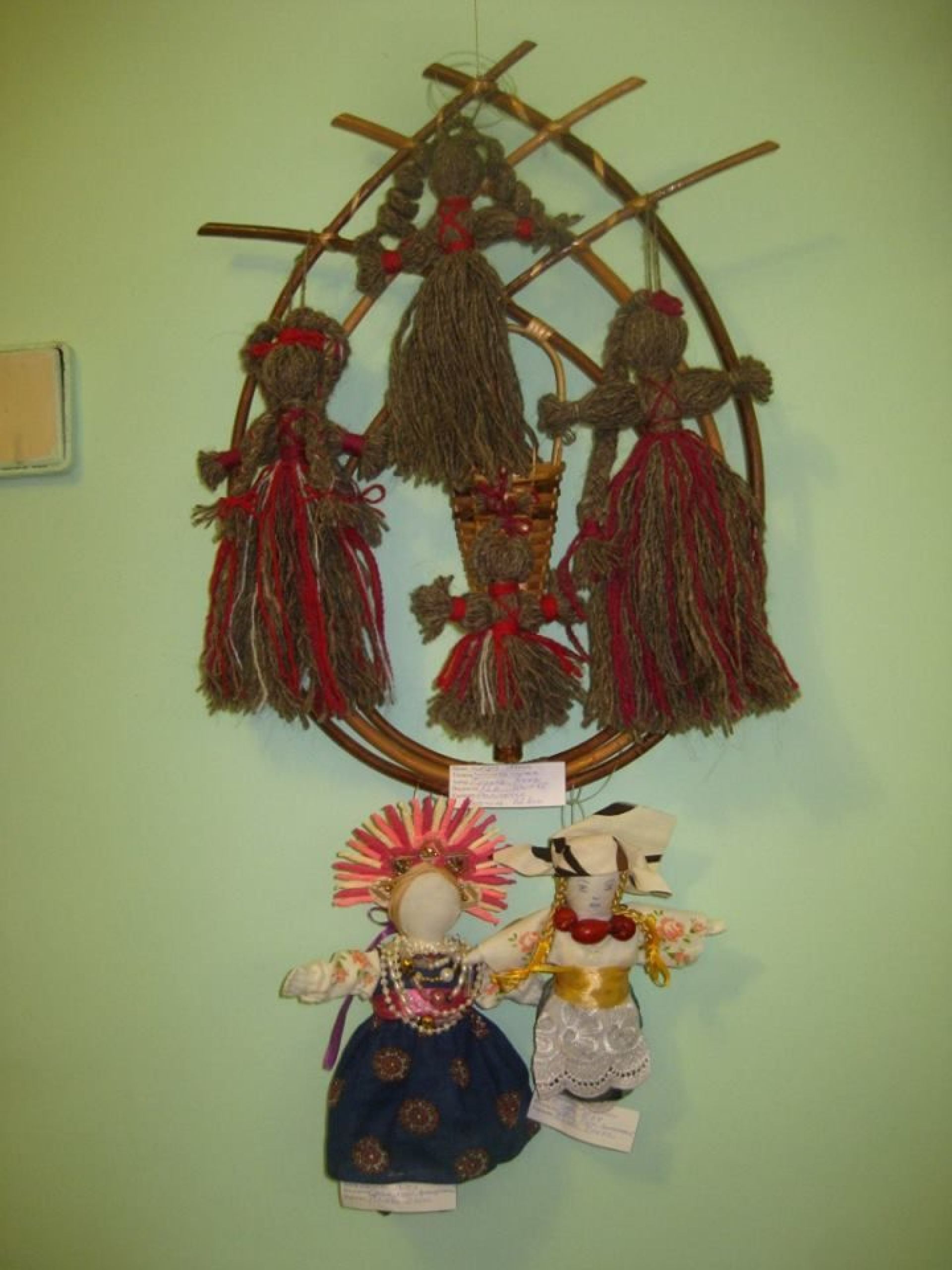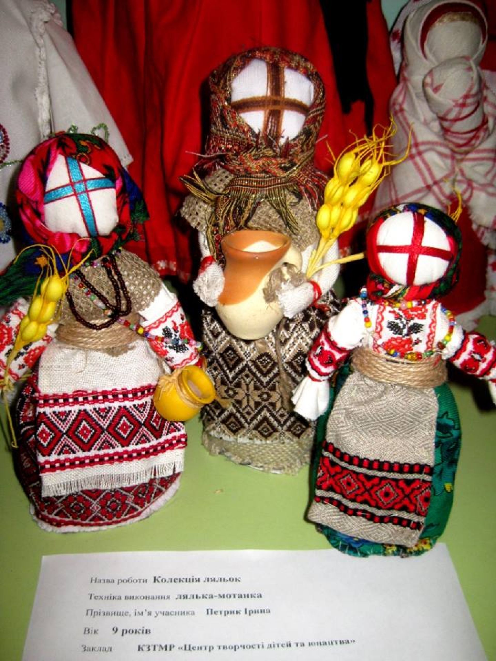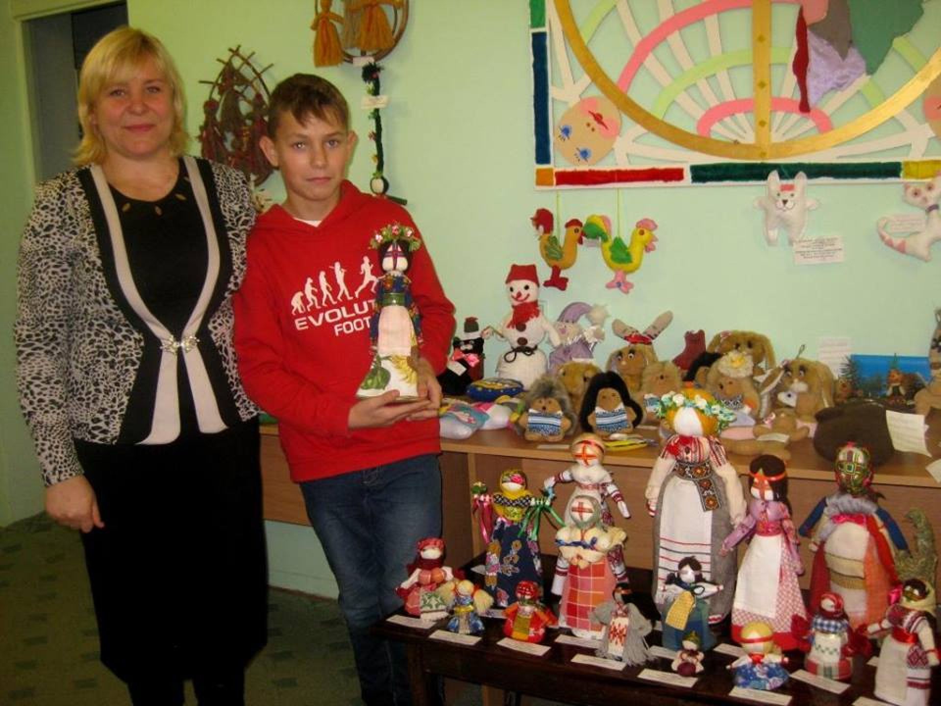 Завдяки своєму наставнику, керівнику гуртків Ірині Харатін уже три роки виготовляє іграшки 12-річний Влад Москалюк зі Скали-Подільської. На виставку він привіз шість своїх робіт. Каже, що найбільше любить створювати ляльки-мотанки. Одна з них називається Літо. Вона виготовлена з марлі на кукурудзяному качані. На голові має віночок, вбрання прикрашене квітами. Ще один витвір хлопчика – кіт Гульониш, який є символом вдалих мандрів. Ця іграшка виготовлена із сіна, обмотаного нитками. Для краси Влад почепив котові на шию бантика з червоної стрічки.
