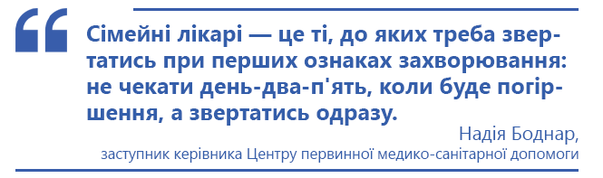 — Тому що з першого дня лікувати пацієнтів значно легше, аніж коли вже виникли ускладнення, — говорить Надія Боднар.— Останнім часом бачимо, що люди, які хочуть отримати первинну допомогу, масово ідуть в амбулаторії, а там створюються черги. А переважно, це хворі люди, які "діляться" вірусом з тими, хто є довкола.