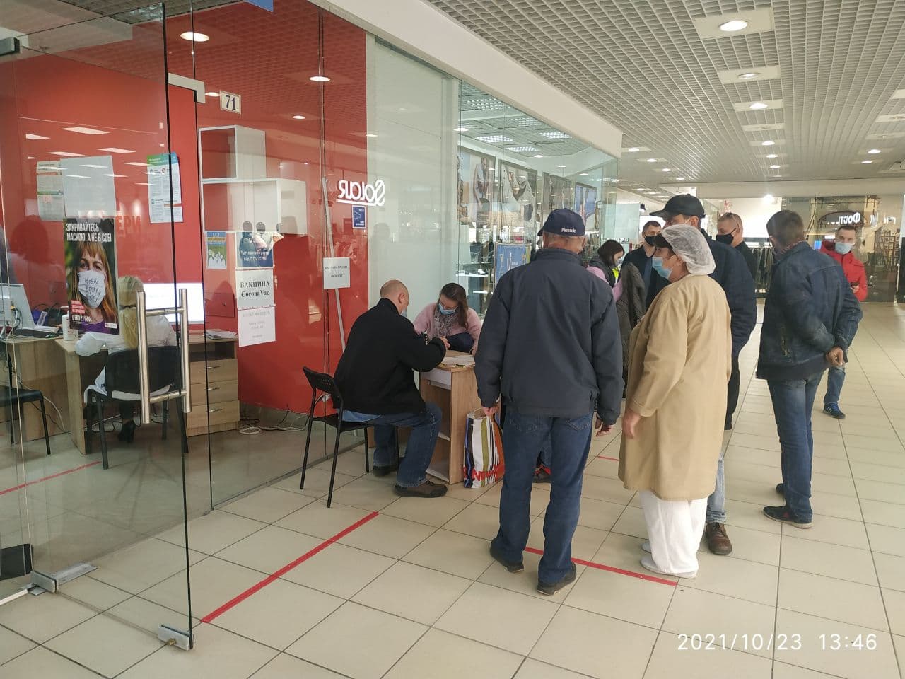 В цьому центрі черга дійсно була. О 15.30 на свою дозу вакцини на вулиці очікували до 20 осіб, ще кілька – в приміщенні.