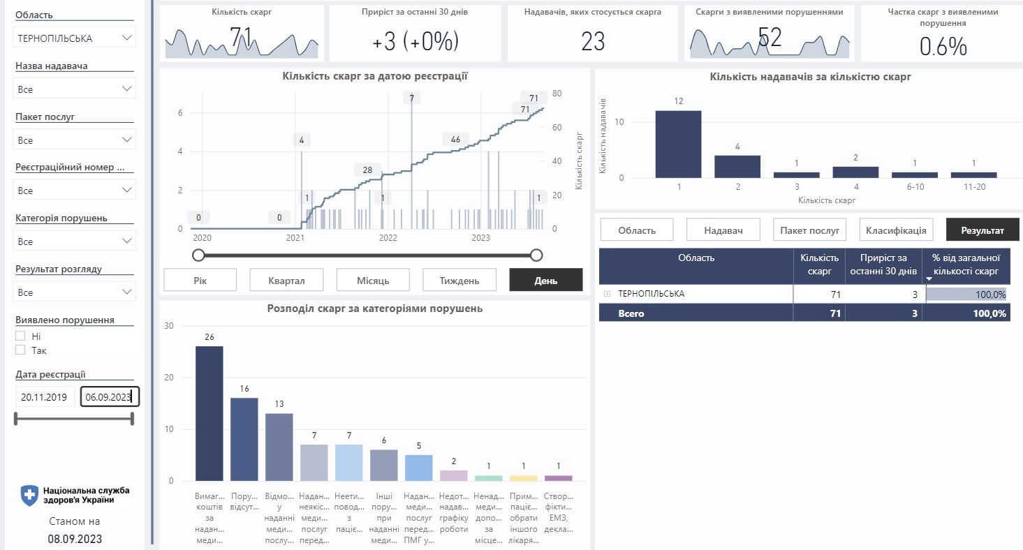 На медзаклади Тернопільщини за період з 20 листопада 2019 року по 6 вересня цього року надійшли 26 скарг про вимагання грошей за надання медичних послуг, витратних матеріалів та лікарських засобів, передбачених програмою медичних гарантій, укладання декларацій.