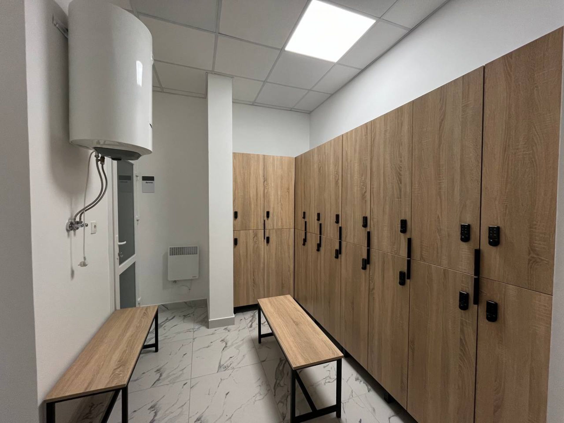 Поруч – басейн, його планують залучити для реабілітації з наступного тижня. Окремі роздягальні для чоловіків та жінок з душовими, вбиральнями. Кожна шафа обладнана інтелектуальним замком, а вбиральні та душові – спеціальними поручнями для маломобільних людей.