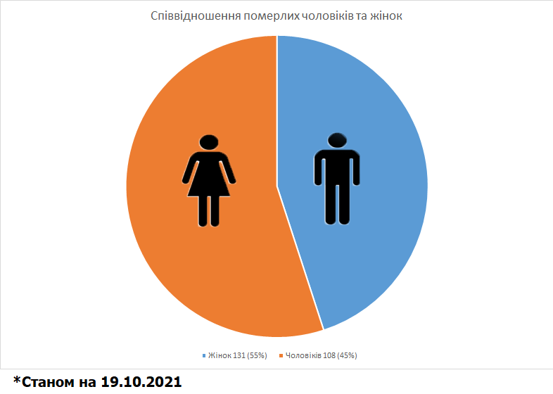 Як свідчать дані – жінок серед померлих більше. Різниця не така велика. 55% жінок та 45% чоловіків.