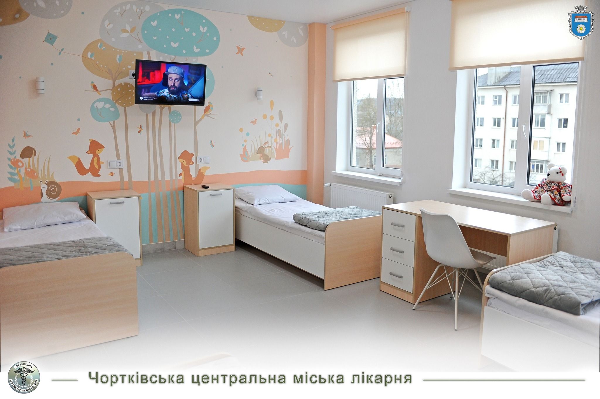 Педіатричне відділення Чортківської лікарні відкрили після ремонту. Тепер у кожній палаті є окремий туалет, умивальник, душ, якісне загальне та приліжкове освітлення, телевізор, бактерицидні лампи, кондиціонер, письмовий столик тощо; у деяких палатах – колиски для немовлят.
