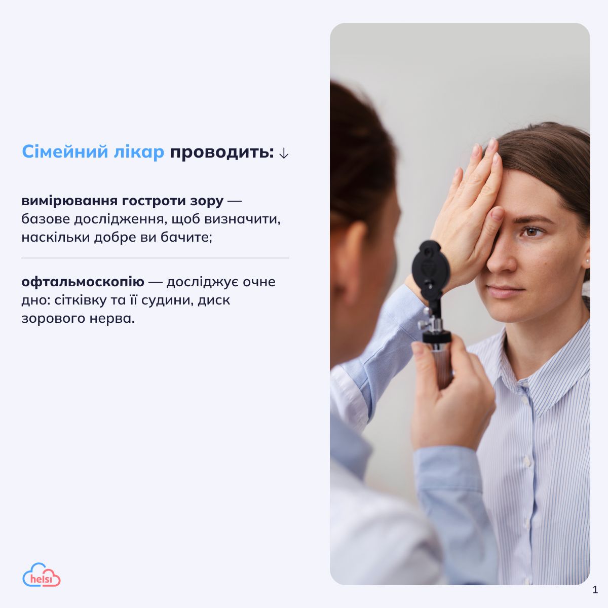 Якщо знадобиться докладніша діагностика, лікування або корекція зору, сімейний лікар скерує вас до офтальмолога.