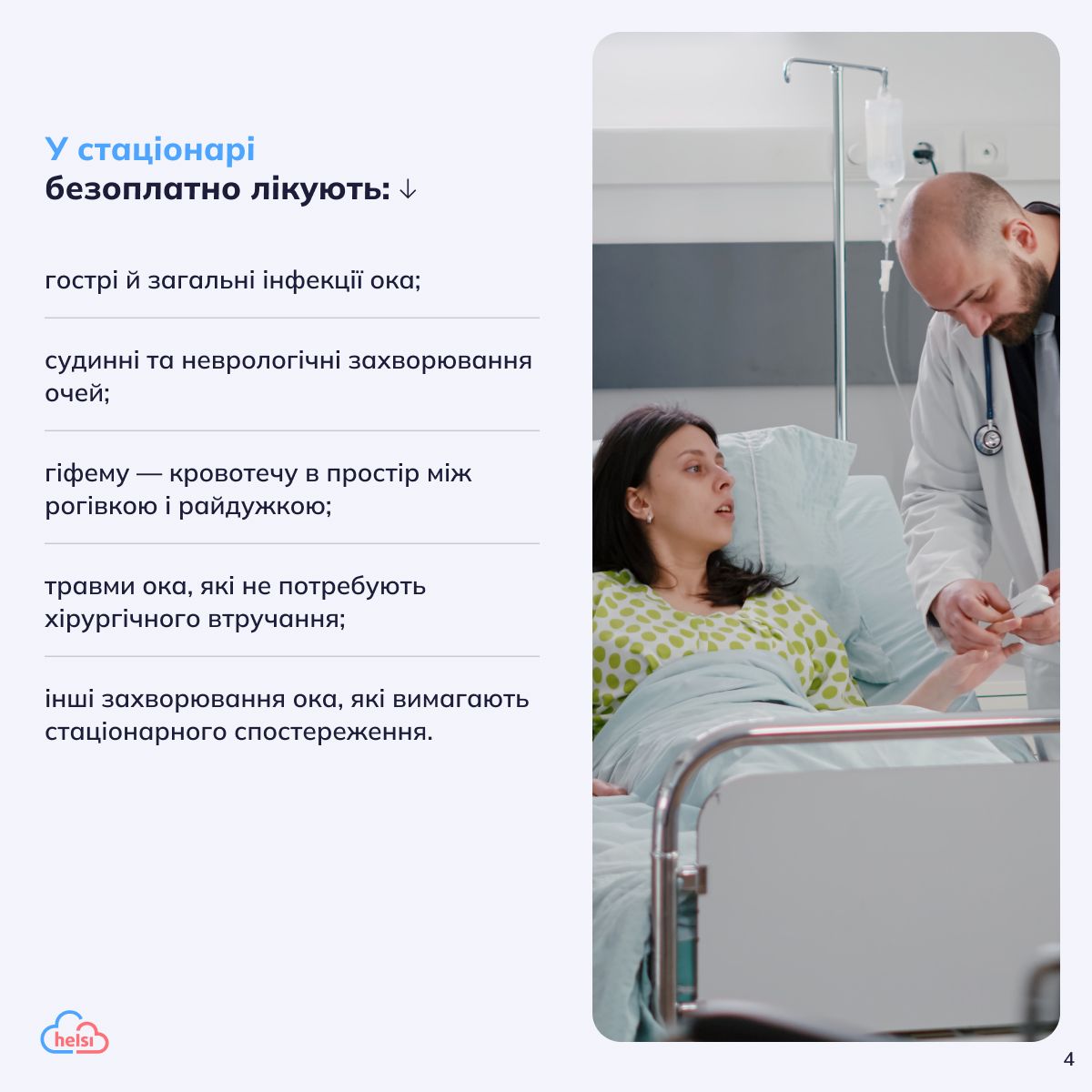 Також можна пройти безоплатне стаціонарне лікування захворювань зорового апарату та станів, які не потребують хірургічного втручання.