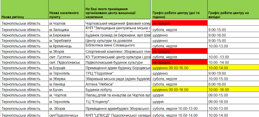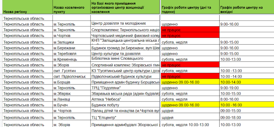 Які центри та пункти масової вакцинації проти COVID-19 працюють на Тернопільщині