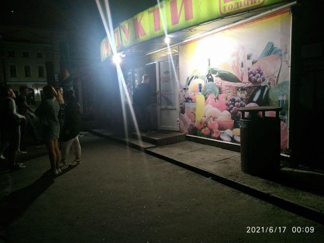 А от в центрі міста один із магазинів, який нам “порадили” тернополяни, і далі працює цілодобово. Та, як переконалися, користується неабиякою популярністю у відвідувачів. Так, завітавши сюди о 23.13, помітили чималу чергу - понад десять людей. Переважно стояли молоді люди, хлопці та дівчата. Покупці перед нами купували пиво, а один з чоловіків - пляшку горілки.
