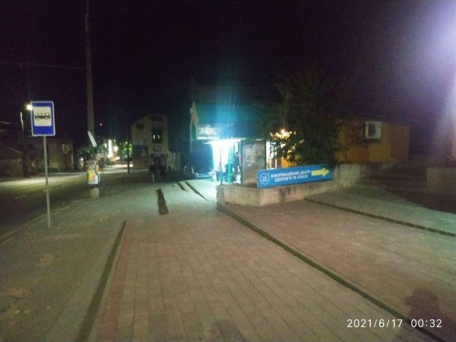 Продовжуємо перевірку закладів і о 00.32 цього ж дня підходимо до магазину, що розташований в районі міського стадіону. Продають алкоголь через віконечко. Пробуємо придбати спиртне. Поряд з нами ще кілька молодих людей купують алкоголь. Продавець без зайвих питань приносить хмільний напій, ми розраховуємося і йдемо.