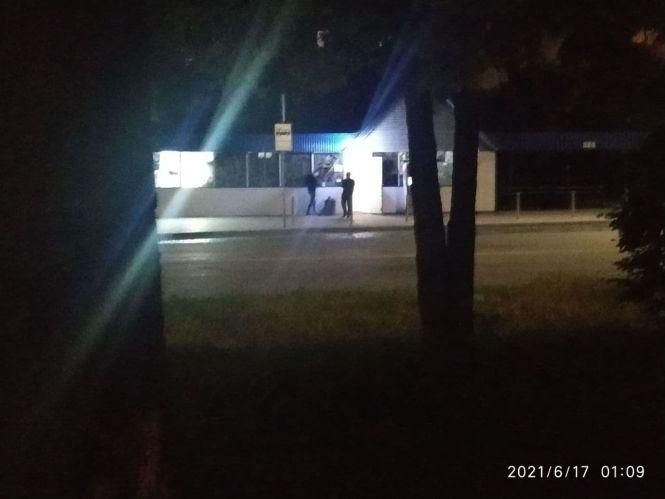 Опівночі прямуємо до ще одного популярного місця, де за ствердженням тернополян вночі продають алкоголь, – до цілодобового магазину біля залізничного вокзалу. Тут, до речі, ми зустріли правоохоронців, які виходили з магазину, можливо, перевіряли заклад. У руках нічого не тримали.