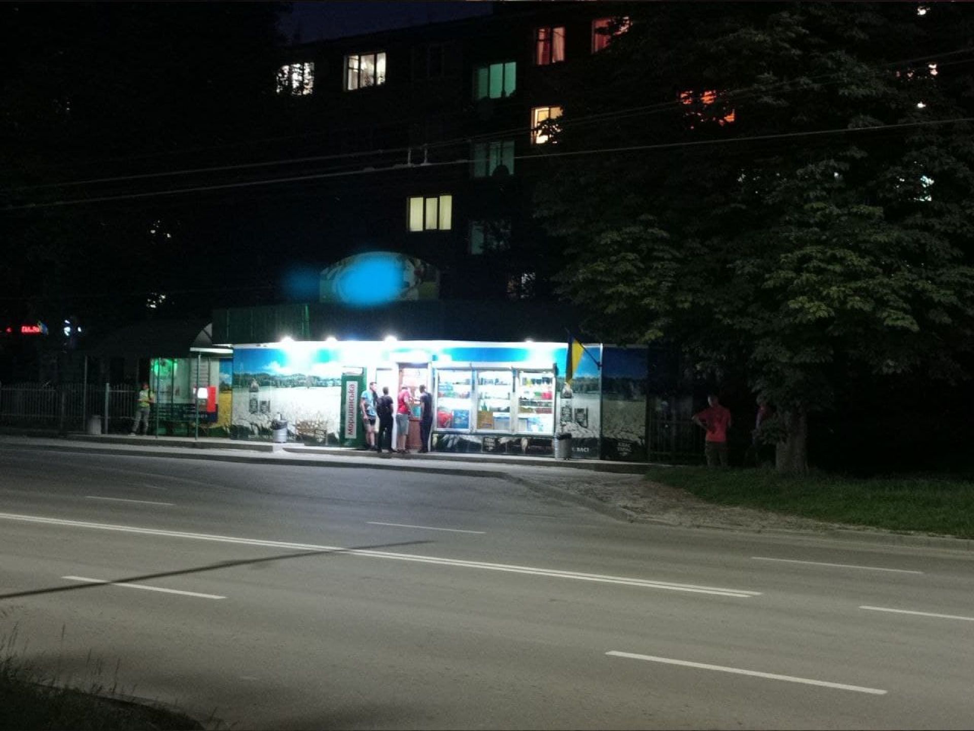 Наступна точка продажу алкоголю – магазин, що на вулиці Лесі Українки. На годиннику – перша ночі. Продавець стоїть надворі.