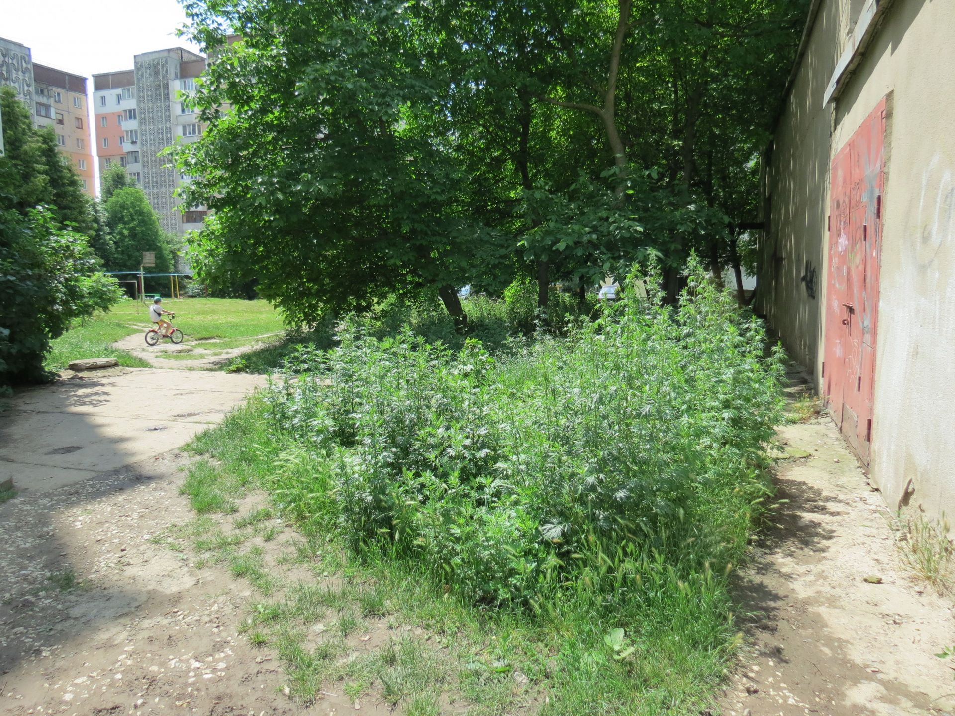 Не має жодних претензій і пан В’ячеслав, який мешкає тут. Він розказує, що безпритульних котів підгодовує кілька старших жінок. Їжу для тварин не залишають біля під’їздів, а виносять на спеціальне місце – своєрідний пустир за будинком. Коти вже добре знають цю «точку» з їжею, і сходяться сюди на сніданок та вечерю. Чоловік показує нам місце підгодівлі тварин. Тут лежать кістки та рештки корму, стоять поїлки. Місце брудне, літають мухи, а вода у пляшках «позеленіла». Ополудні котів на місці не видно. Натомість зустрічаємо їх біля смітника, який поруч. Тут тваринам залишають хліб.