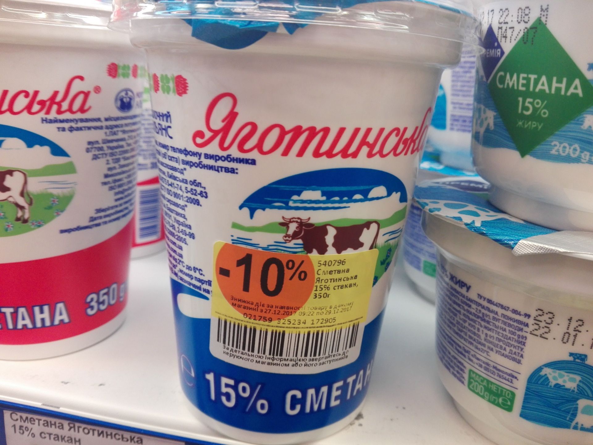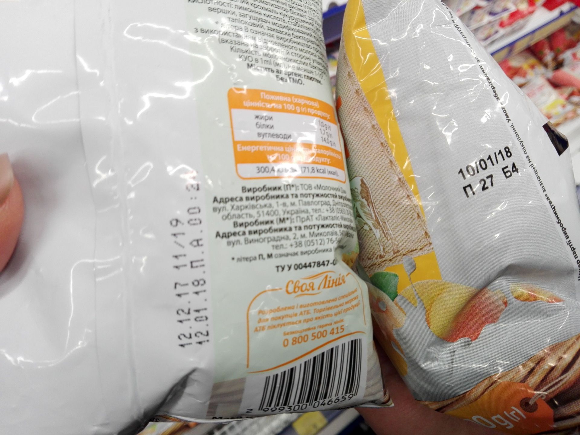 “АТБ-маркет” подібна ситуація з молочкою, коли термін завершується за 1-2 дні. Також у цьому магазині на йогуртах одного й того ж виробника була набита дата по-різному. Враження склалося, що на одних дата від виробника, а на інших, мабуть, що протермінованих - інша.