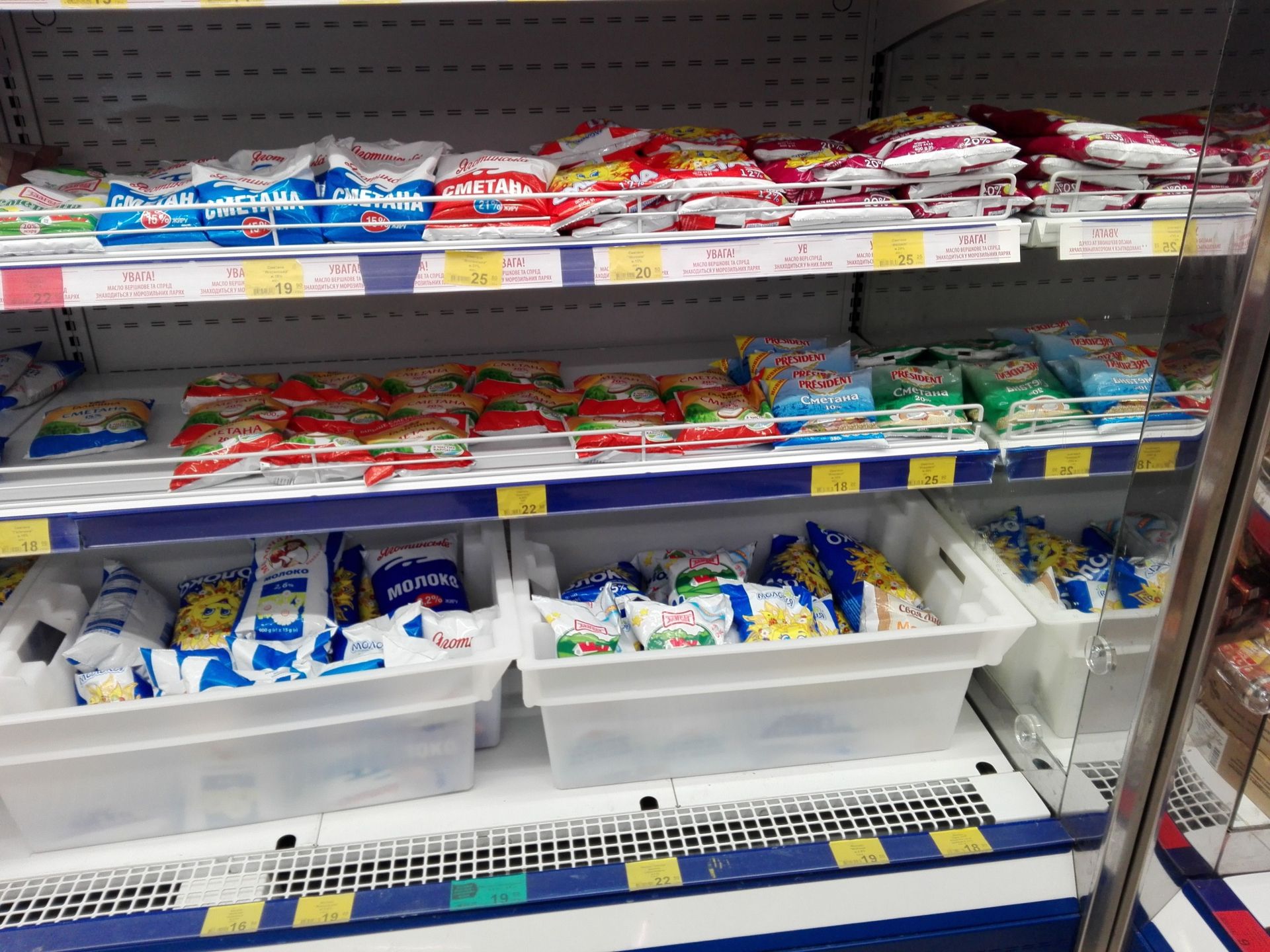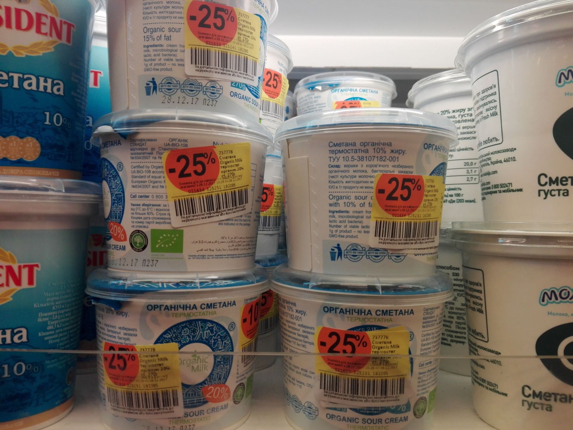 Працівники місцевих супермаркетів часто виставляють на товари, у яких закінчується термін придатності, знижки, різні акції, та ховають свіжий товар ззаду майже зіпсутих продуктів. Проте, у більшості магазинів все-таки "прострочки" немає на полицях. Чи не у кожному маркеті ми побачили багато товарів, в яких термін придатності завершувався через 1-2 дні.
