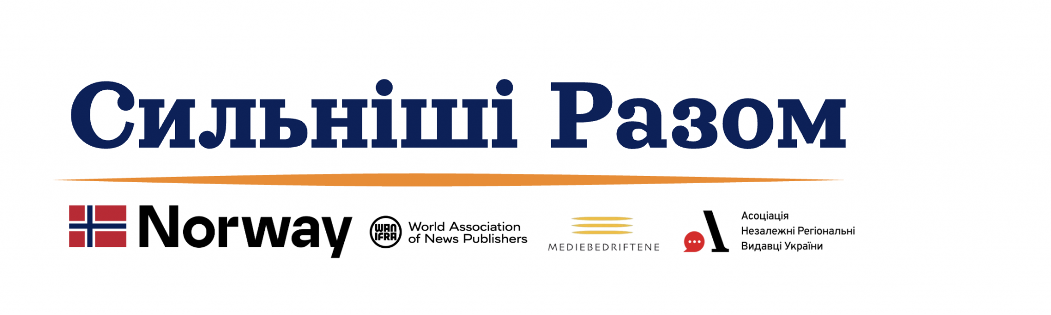 «Публікацію підготовлено за підтримки програми «Сильніші разом: Медіа та Демократія», що реалізується Всесвітньою асоціацією видавців новин (WAN-IFRA) у партнерстві з Асоціацією «Незалежні регіональні видавці України» (АНРВУ) та Норвезькою асоціацією медіабізнесу (MBL) за підтримки Норвегії. Погляди авторів не обов’язково відображають офіційну позицію партнерів програми».