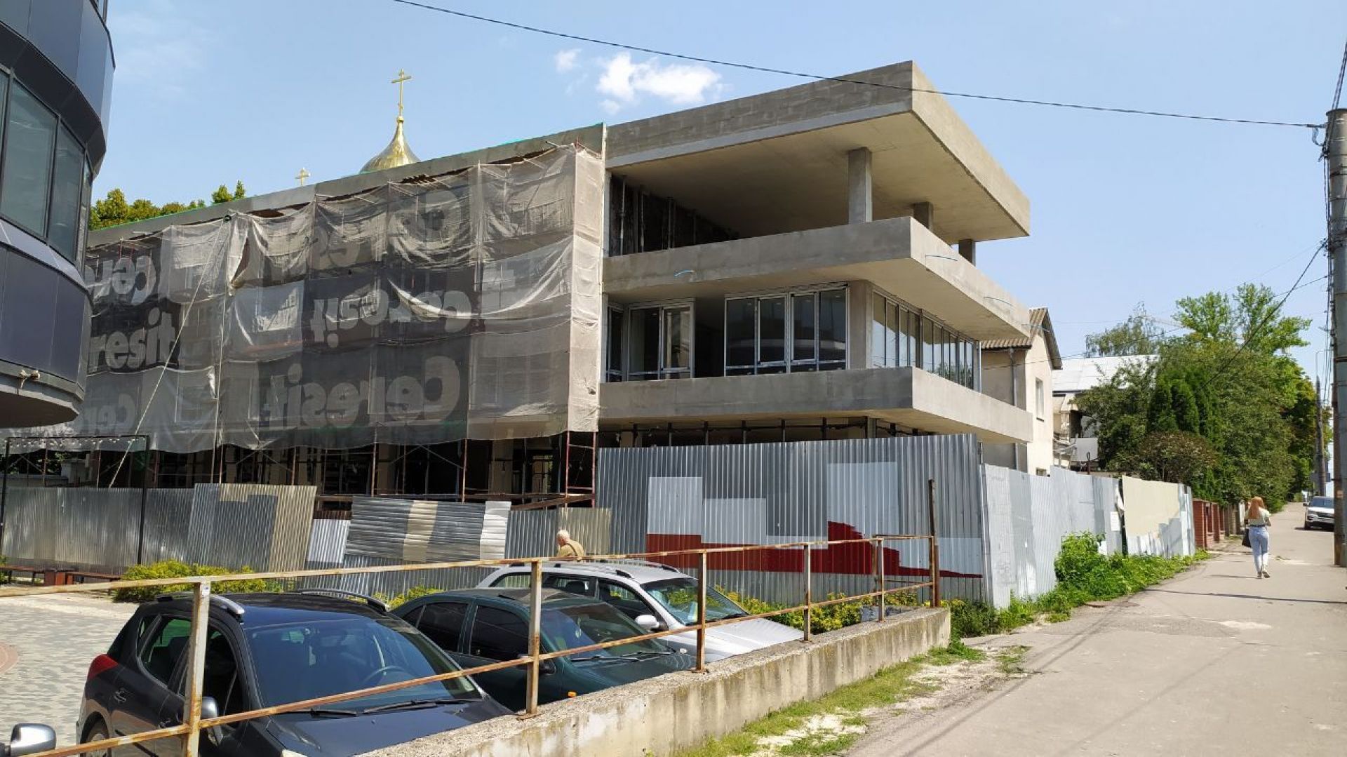Гранично допустима висотність будинків, будівель та споруд – 12 метрів. Це висота приблизно чотирьох поверхів будівлі. Наразі видно, що зведено три поверхи, а судячи з арматури, яка стирчить «на даху» третього поверху, четвертий (щонайменше) все ж планують будувати.