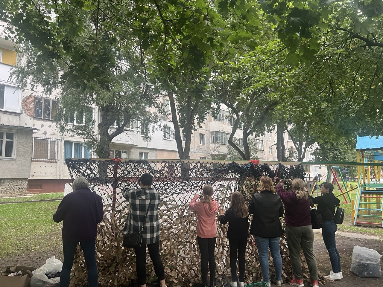 Загалом команда сплела та передала на фронт понад 1 500 маскувальних сіток. Найбільші — розміром 6×6 або 6×7 метрів, однак частіше плетуть дві-три менші, які потім з’єднують між собою. Запити надходять щодня — як від волонтерів, так і безпосередньо від військових. Зі слів пані Ірини, намагаються не відмовляти нікому.