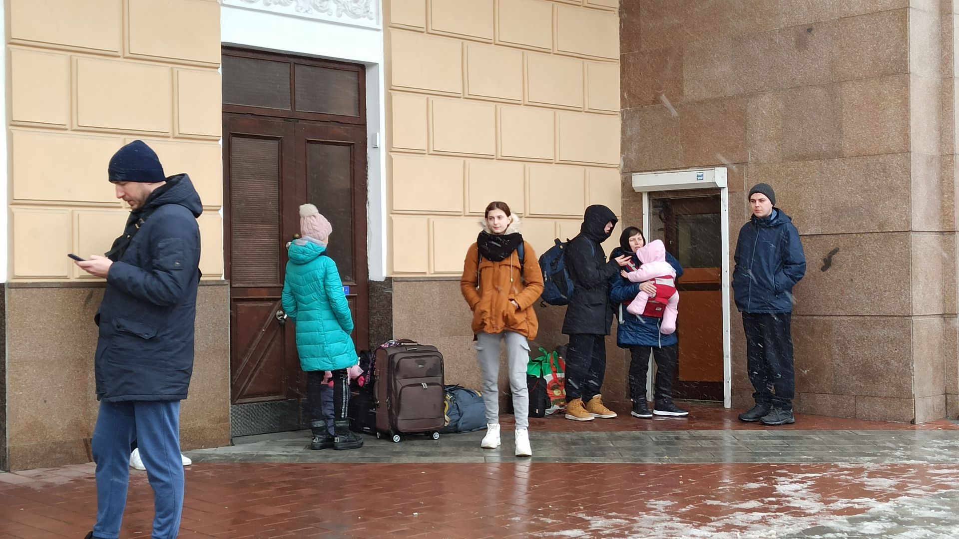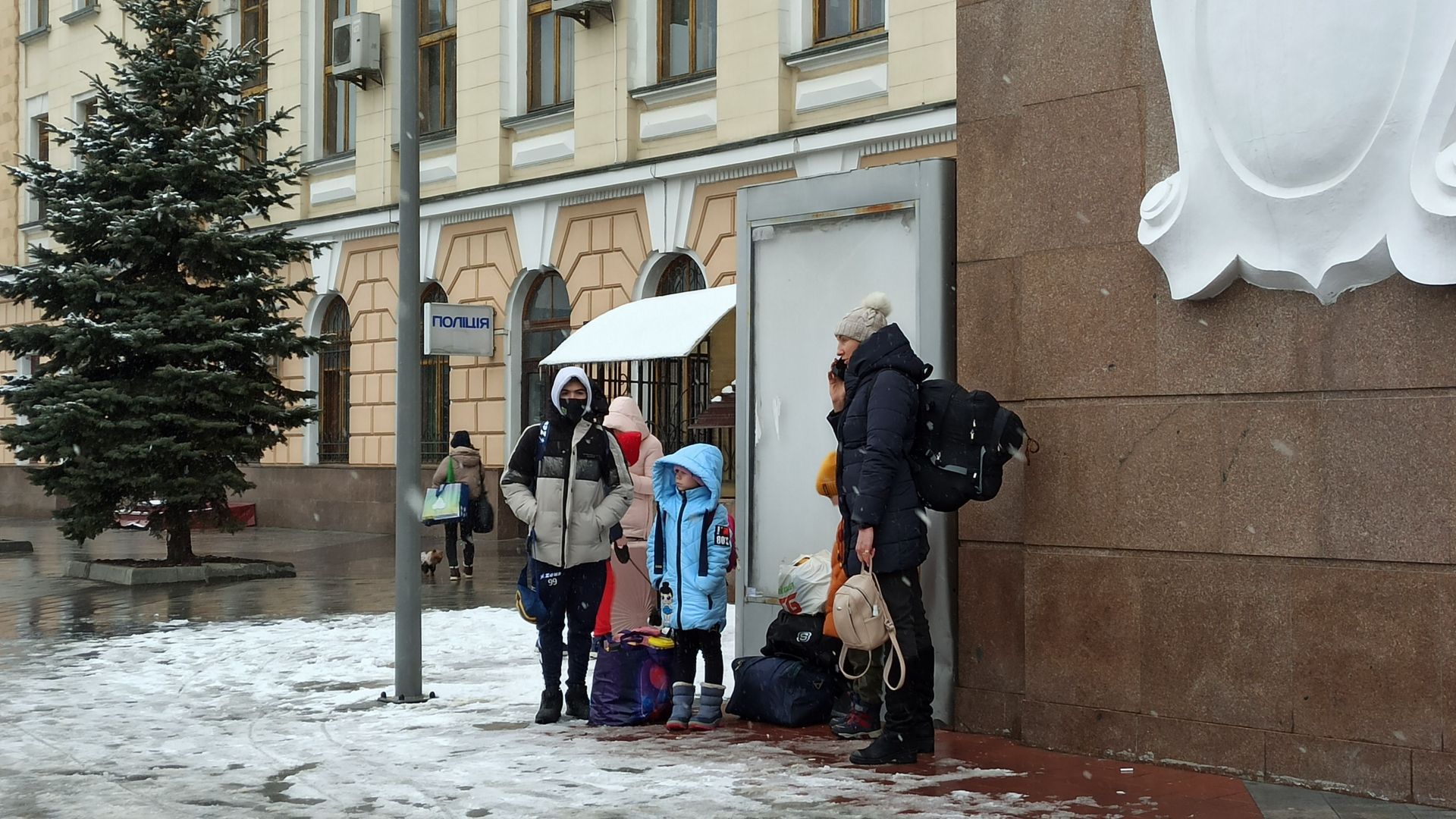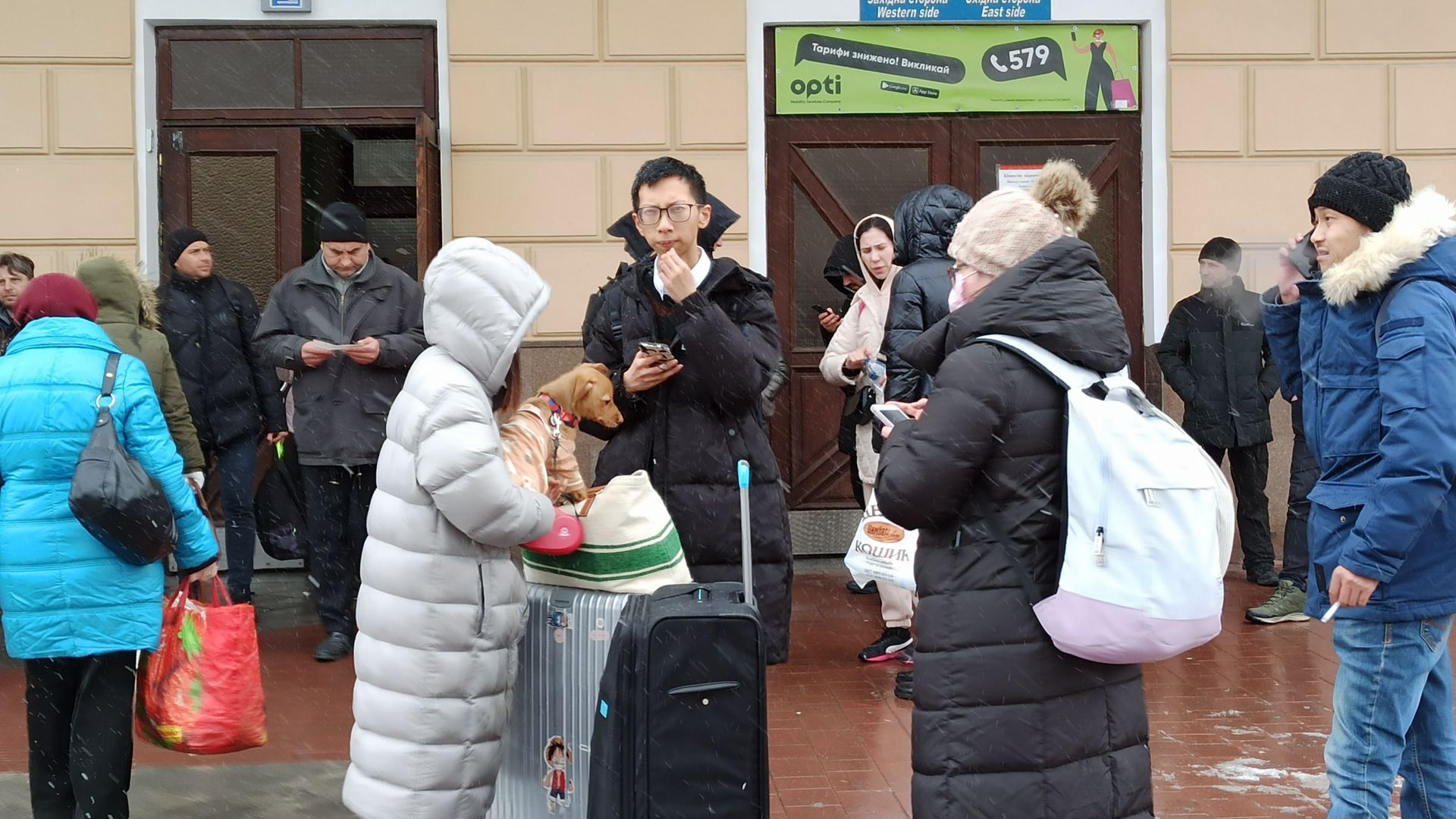 Харків’ян приїхало чимало – здебільшого жінки та діти, старші люди. Значно менше є чоловіків і молодих хлопців. Багато іноземців. Перед будівлею вокзалу звучить японська, китайська, грузинська та інші мови.