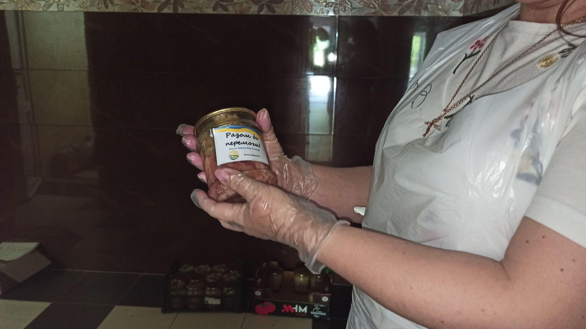 – Горішки з медом запаковуємо у маленькі баночки, аби захисникам було зручно їсти, адже на лінії зіткнення справжні польові умови. Ще готуємо м’ясні тушонки. Першу партію – 1000 банок, вже відправили. Наразі почали новий відлік та вже зробили 400 штук, – ділиться пані Людмила.